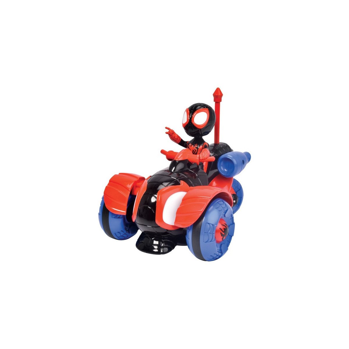 Este Techno Racer cuenta con un diseño aerodinámico y futurista que captura la esencia de la tecnología avanzada del universo de Spider-Man. Los colores vibrantes y las líneas elegantes del coche lo hacen destacar, mientras que la figura de Spidey incluida asegura que el héroe siempre esté listo para la acción. Gracias a su fácil manejo, este vehículo es adecuado para niños a partir de 3 años, permitiendo a los más pequeños desarrollar sus habilidades de coordinación y control mientras disfrutan de sus personajes favoritos.