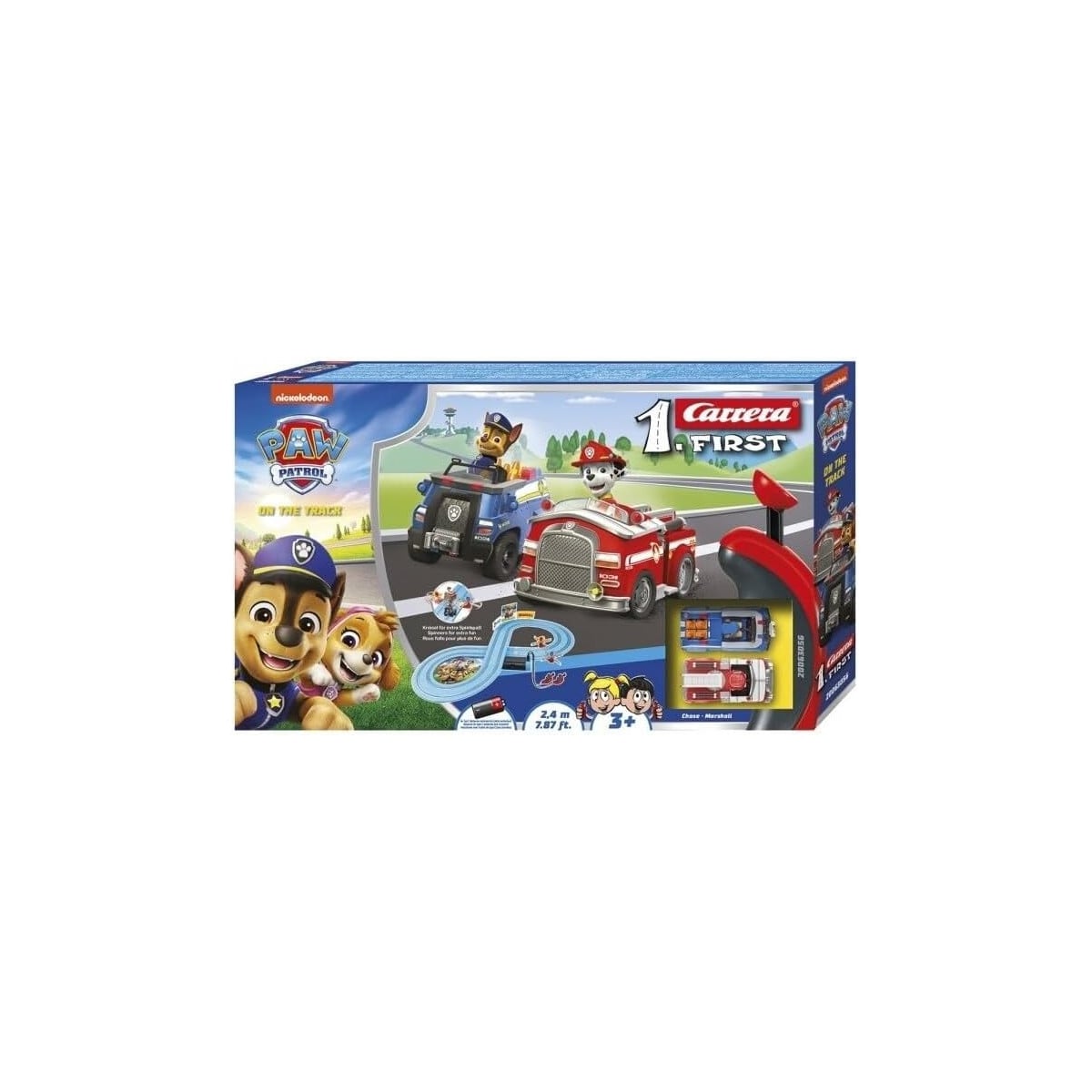 Un circuito Carrera First de La Patrulla Canina con Chase y Marshall, perfecto para que niñas y niños vivan carreras emocionantes con sus héroes favoritos.