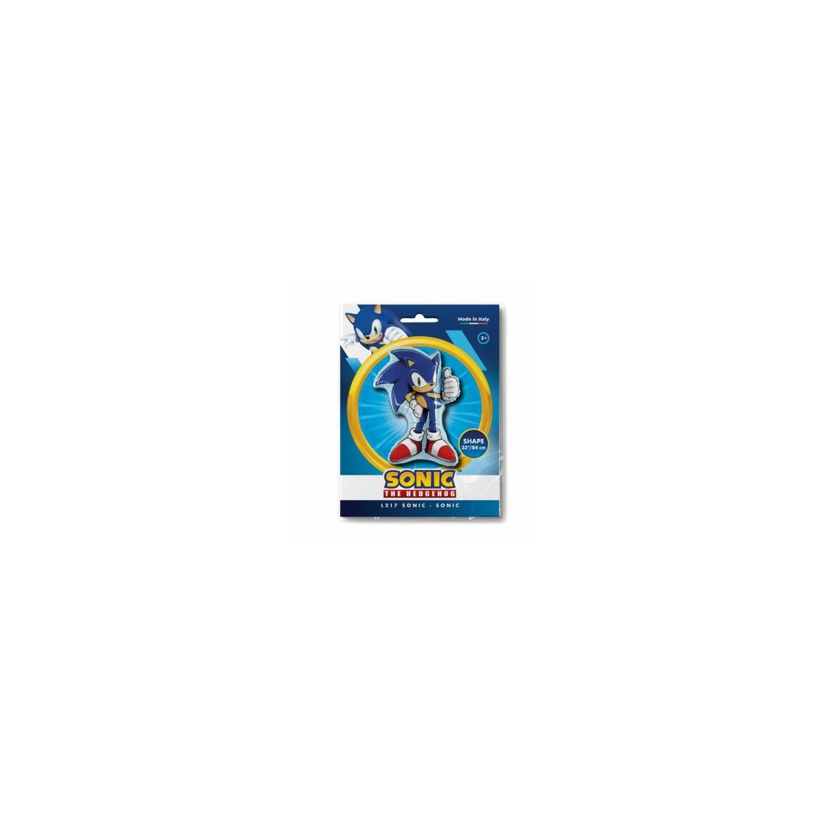 Globo foil de Sonic de 84 cm. Ideal para fiestas temáticas, se infla con aire o helio, es fácil de montar y llena de energía cualquier celebración.