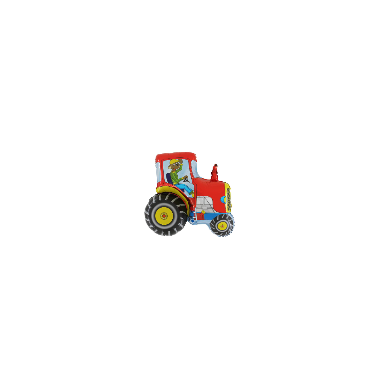 Globo tractor rojo de 63 cm, ideal para fiestas infantiles. Apto para helio o aire, con diseño llamativo y perfecto para decorar cumpleaños.