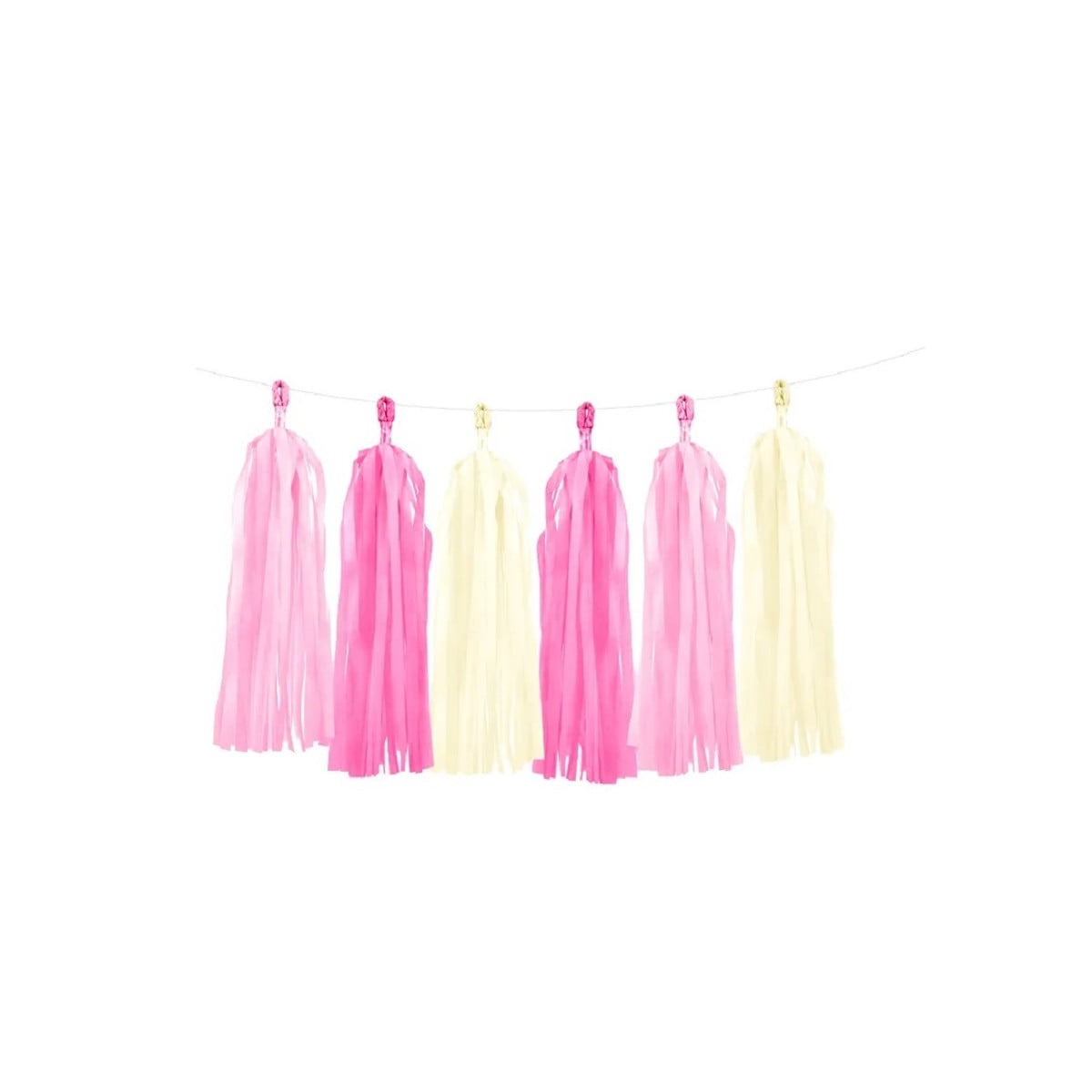 Decora tu fiesta con estas guirnaldas en colores rosa y crema.