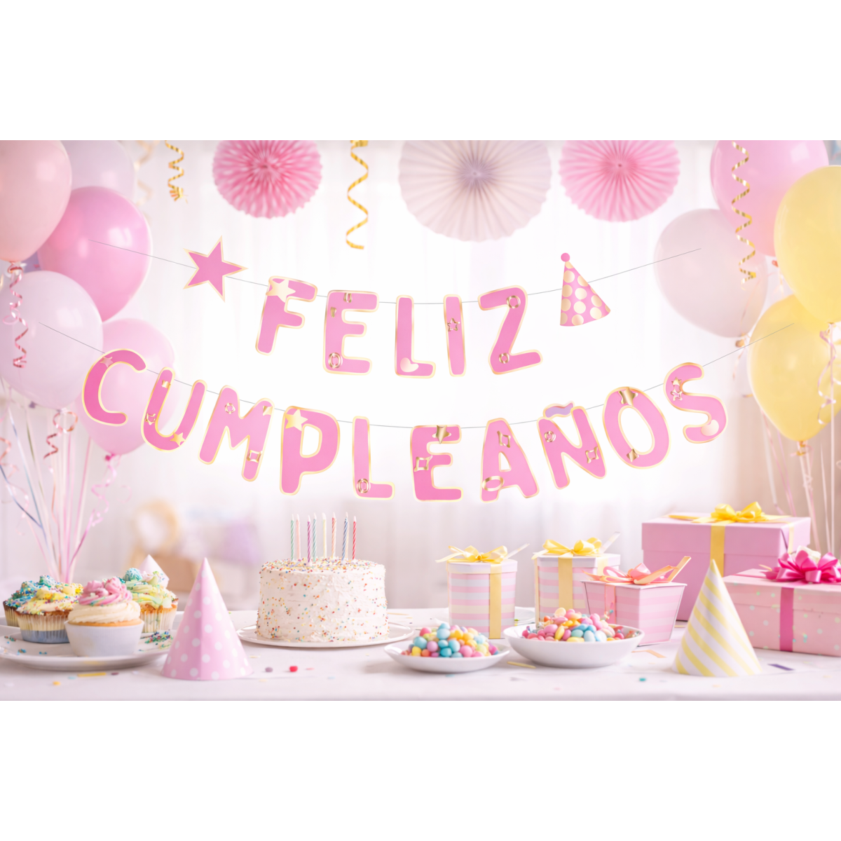 Descubre la Guirnalda Feliz Cumpleaños Rosa 3 M; ideal para decorar fiestas con un toque elegante. Perfecta para cumpleaños infantiles y celebraciones especiales.