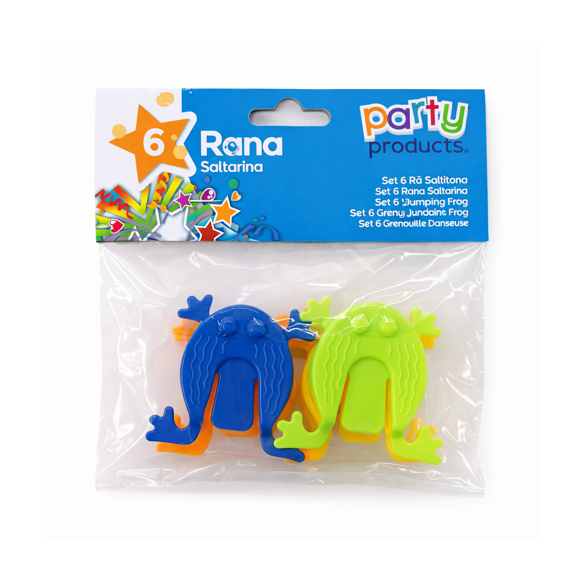 Ranas saltarinas de colores en set de 6 unidades. Perfectas para fiestas, piñatas o detalles infantiles. Diversión asegurada con un juego sencillo y entretenido.