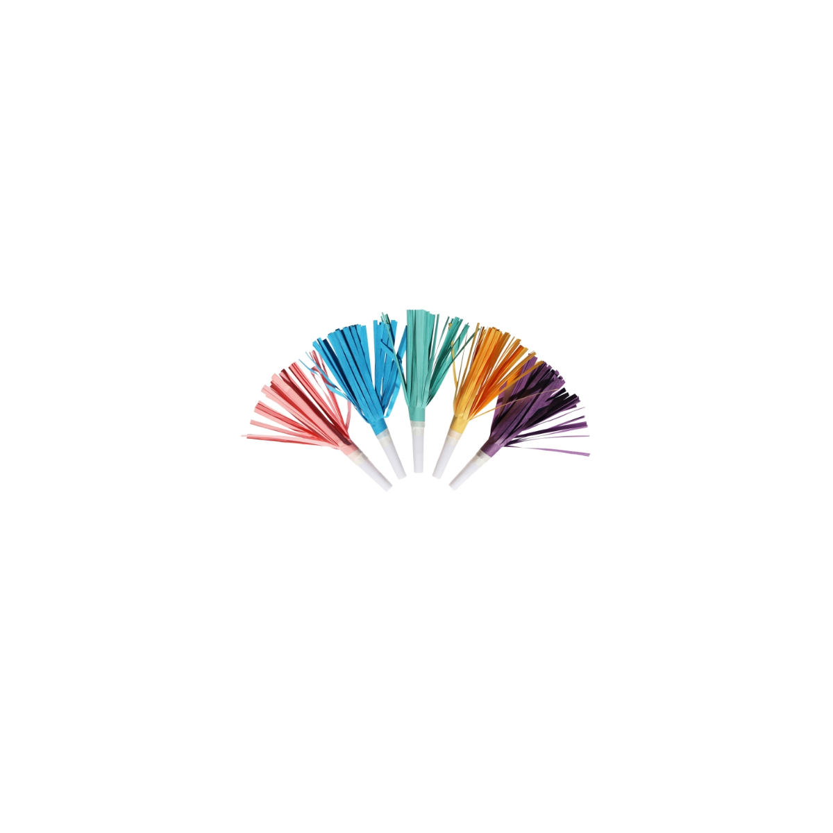 Cada matasuegras mide 16,5 cm y está decorado con un precioso diseño de nube sonriente y arcoíris, lo que lo convierte en un complemento encantador y visualmente atractivo para la mesa de celebración o para repartir entre niñas y niños. Al soplar, se despliega una cinta de colores que añade movimiento, sorpresa y muchas ganas de jugar.