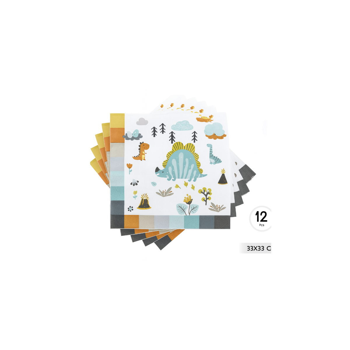 Este pack incluye 12 unidades, ideales para combinar con platos, vasos y manteles de la misma colección Dino, creando una decoración armoniosa y llena de alegría. Un detalle práctico y decorativo que encantará tanto a niñas como a niños.