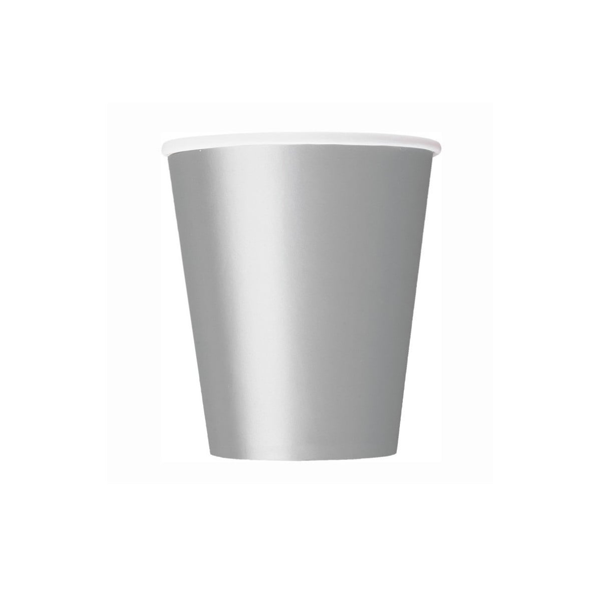 Con este surtido de vasos en color plata tendrás todo lo necesario para repartir bebidas entre tus invitados con un toque elegante.