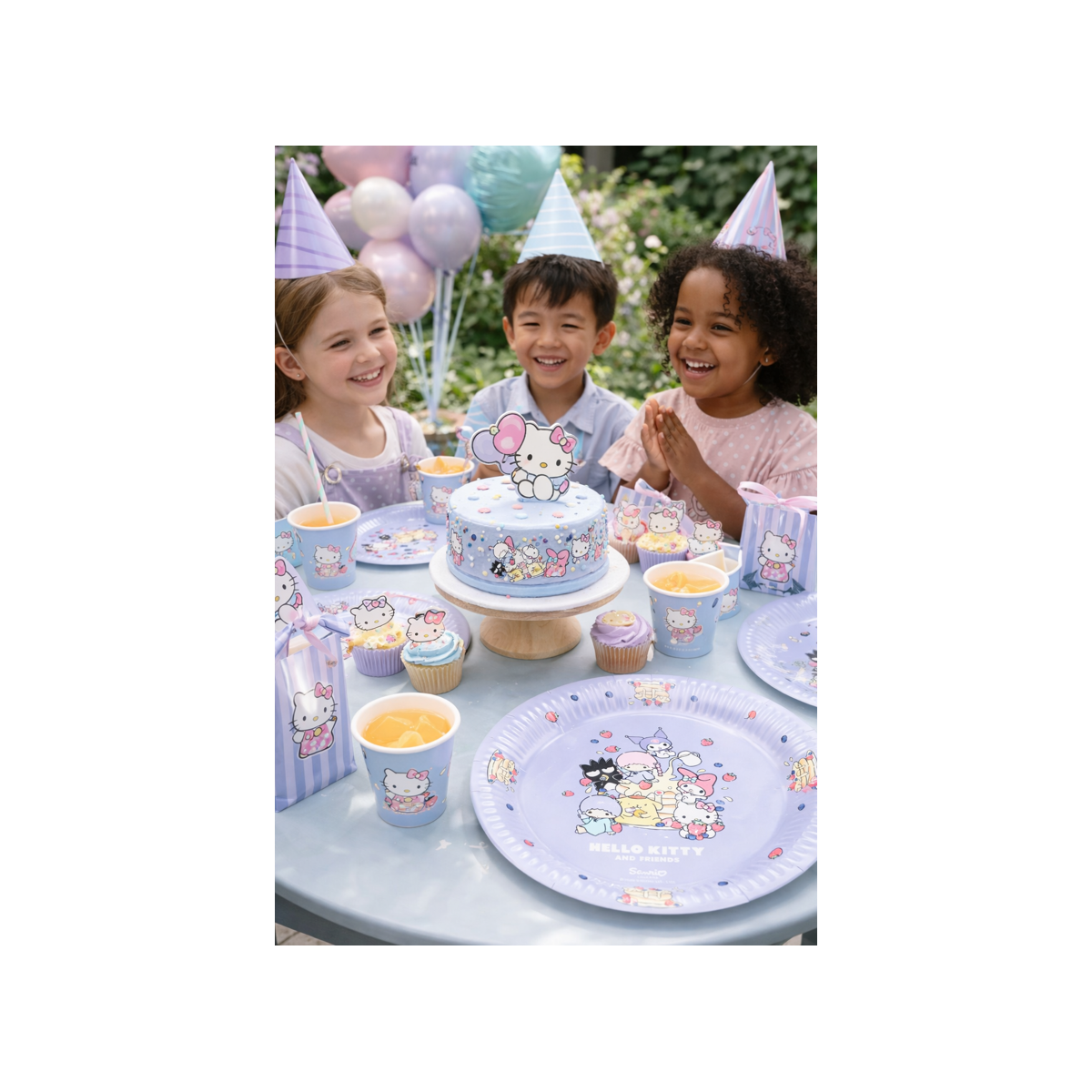 Estos Platos Hello Kitty & Friends Violeta son ideales para darle un toque especial a cualquier fiesta infantil. Diseñados con colores suaves y los personajes más conocidos del universo Hello Kitty, convierten la mesa en un espacio mucho más alegre y llamativo, perfecto para cumpleaños y celebraciones.