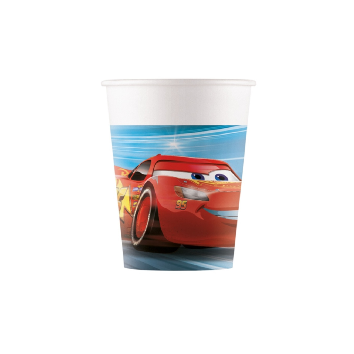 Este pack de Vasos de Cars trae toda la energía de Cars a la mesa del cumpleaños del peque: cada vaso está decorado con el mítico coche de carreras que cruza la línea de meta, listo para la celebración. Con capacidad de 200 ml y material resistente de cartón encerado, son ideales para usar con bebidas frías durante fiestas, meriendas o eventos temáticos.