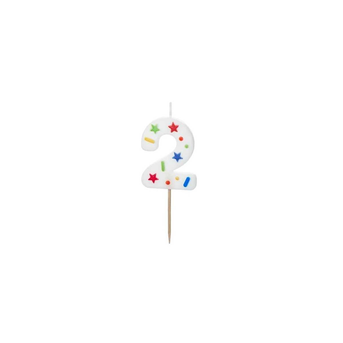 Descubre la Vela Cumpleaños Número 2 Blanca Confeti y convierte cada momento en una fiesta inolvidable.
