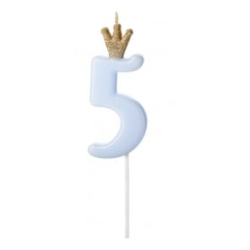 Descubre la Vela Cumpleaños Número 5 Azul Claro y haz que su pastel sea único.
