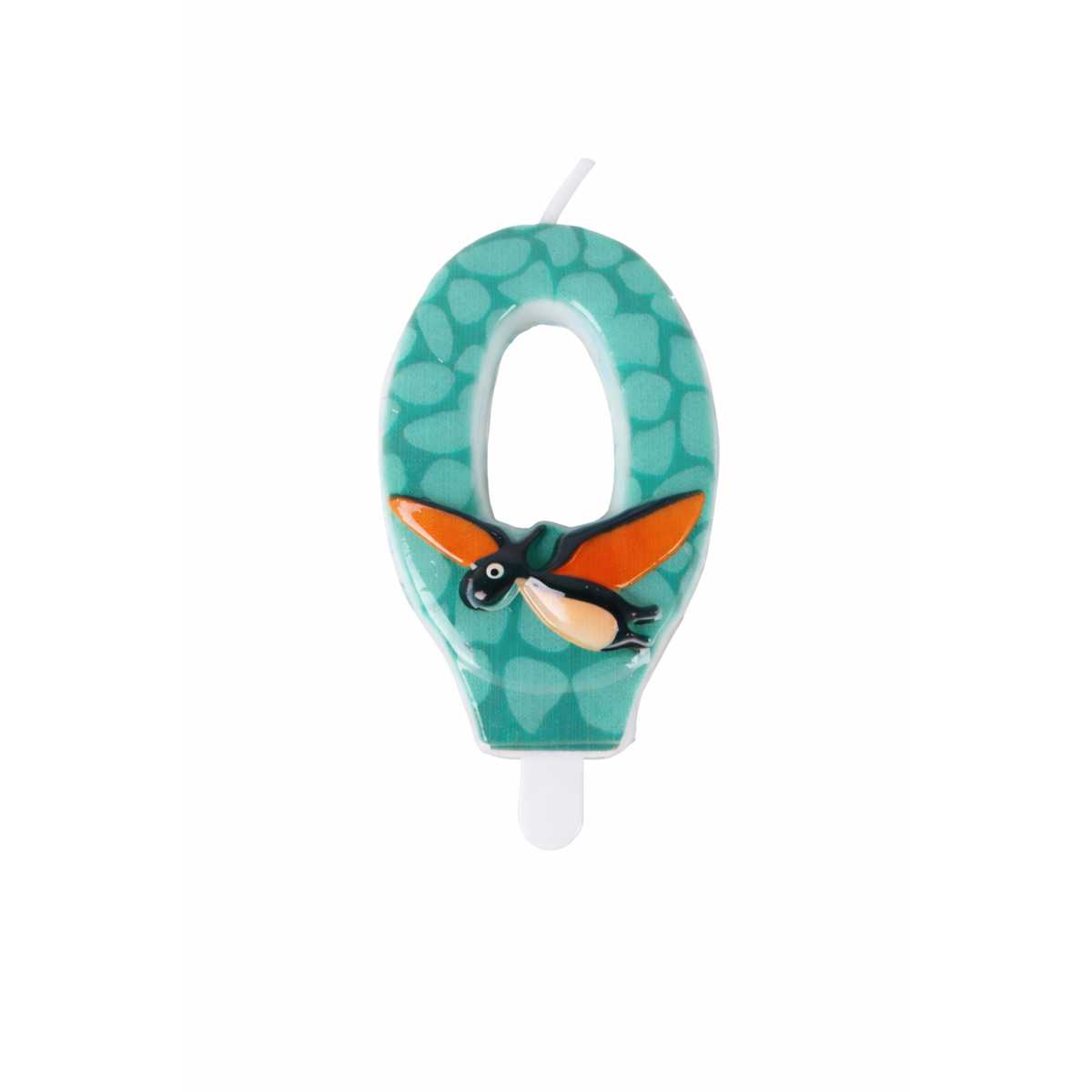 Descubre la Vela De Cumpleaños Número 0 Dinosaurios; con dinosaurio en relieve y diseño prehistórico. Ideal para completar edades redondas y decorar tartas con temática jurásica de forma original.