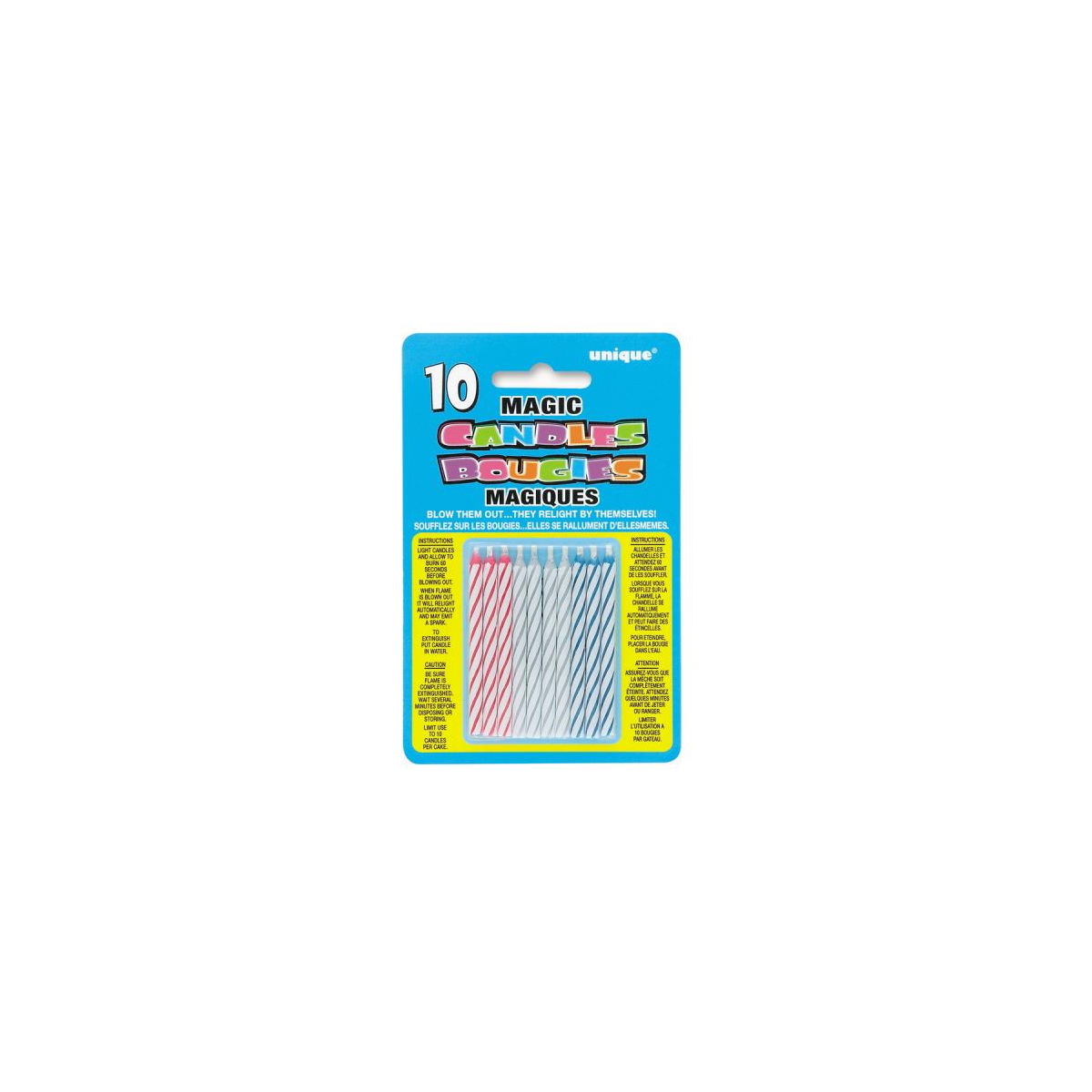 - Pack de 10 velas mágicas de colores variados.