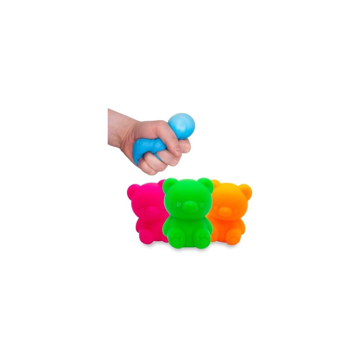 Osito squishy aromático en colores neón, súper blandito y divertido de apretar. Ideal para juego sensorial y relajación para peques desde 3 años.
