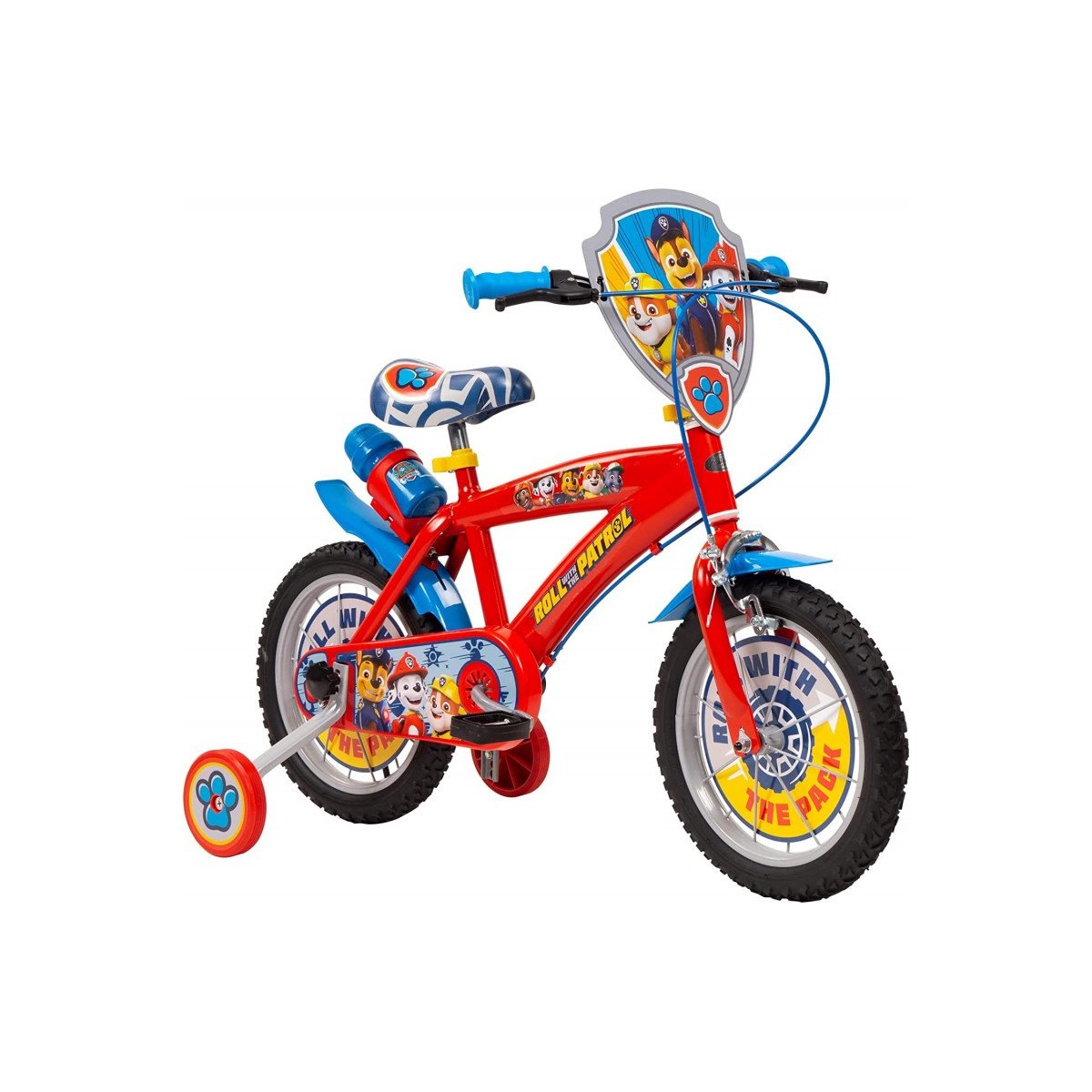 Bicicleta infantil de 14" con diseño de La Patrulla Canina. El manillar y el sillín se regulan para adaptarse al crecimiento de los peques. Además, tiene ruedines para aprender a montar y cuenta con un portabotellas en la parte de atrás.