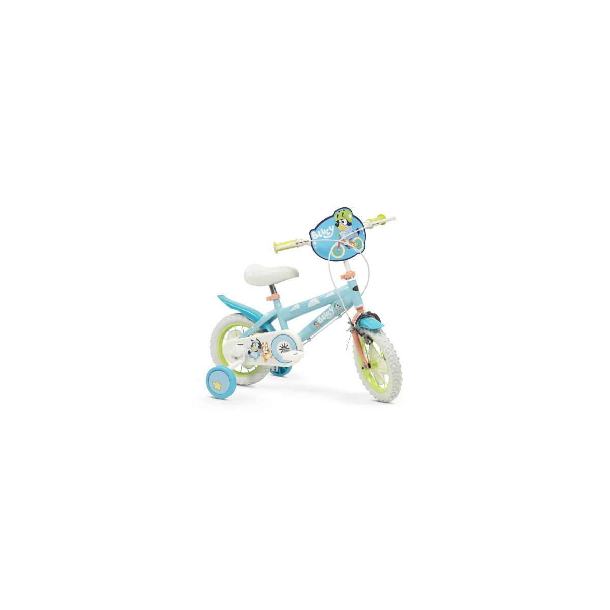 La Bicicleta 12" de Bluey es perfecta para los pequeños aventureros que desean dar sus primeros paseos sobre ruedas en compañía de uno de sus personajes favoritos. Inspirada en la popular serie de televisión, esta bicicleta presenta un diseño divertido y colorido que hará las delicias de los más pequeños, especialmente aquellos que son fanáticos de Bluey. Con un tamaño de 12 pulgadas, es ideal para niños entre 3 y 5 años, ayudándoles a desarrollar su equilibrio y habilidades motoras de forma segura y entretenida. Su estructura está diseñada pensando en la comodidad y seguridad, por lo que incluye estabilizadores laterales (ruedines) que pueden quitarse cuando el niño/a gane confianza en su pedaleo.