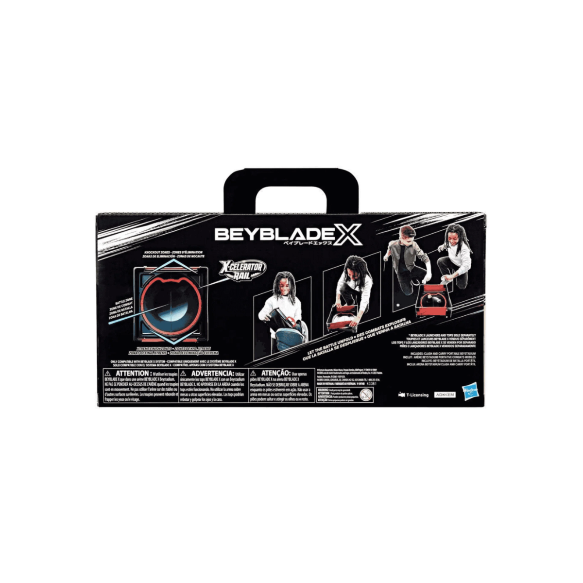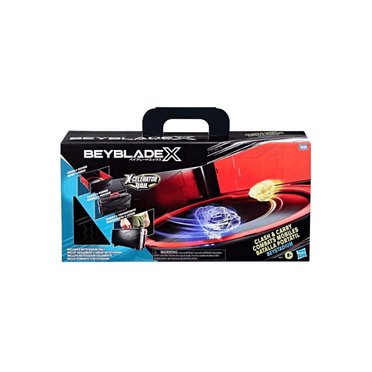 El estadio cuenta con un diseño especialmente adaptado para las peonzas Beyblade X, que aprovechan al máximo el sistema Acelerador-X: una tecnología que permite a las peonzas impulsarse a gran velocidad al engancharse en el riel del estadio. Esto genera combates más dinámicos, con choques espectaculares y giros de alta intensidad que mantendrán a todos los jugadores en vilo.