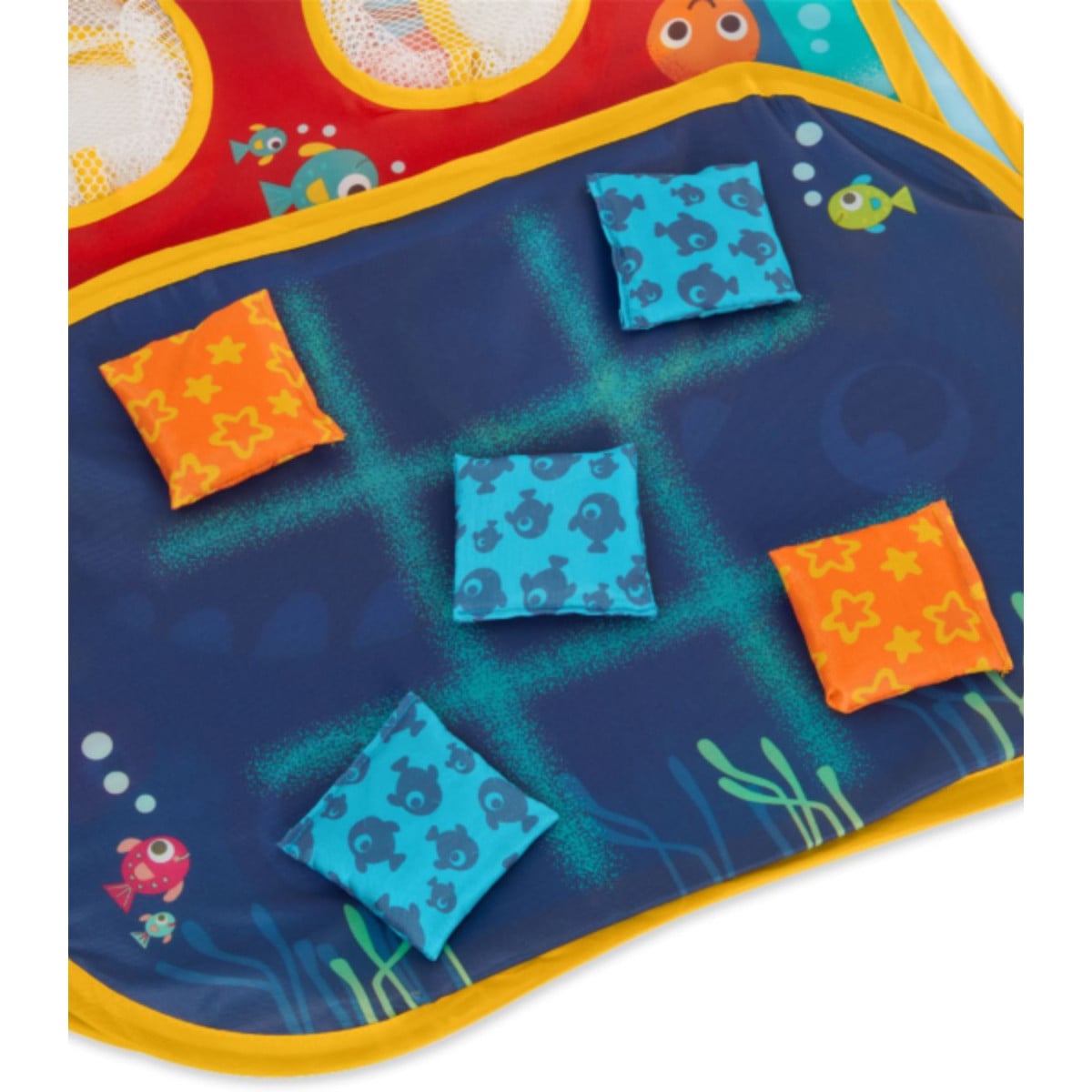 Experimenta la diversión del lanzamiento desde tres perspectivas emocionantes con este juego versátil. Consta de 3 lados distintos y viene con 8 pufs para una experiencia completa. Disfruta de la emoción de tres emocionantes temas: piratas, océano y tres en raya. Este juego es perfecto para disfrutar en casa, en el parque o incluso en la playa. Además, su diseño plegable te permite llevarlo fácilmente en una práctica bolsa.