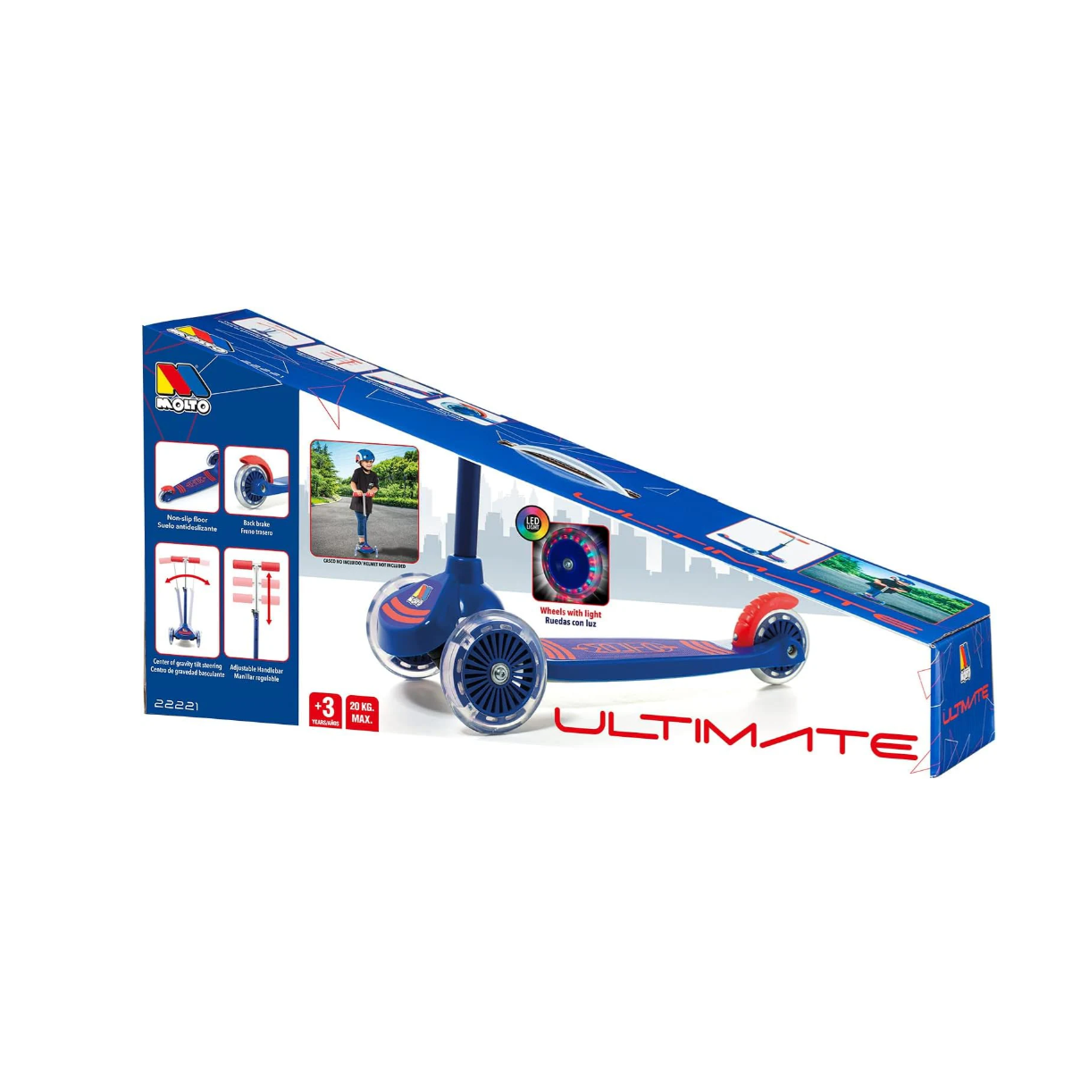 Descubre el Maxi Scooter Azul Con Luces De Molto y disfruta de la velocidad y la diversión, el patinete ideal para acompañar cada aventura sobre ruedas.