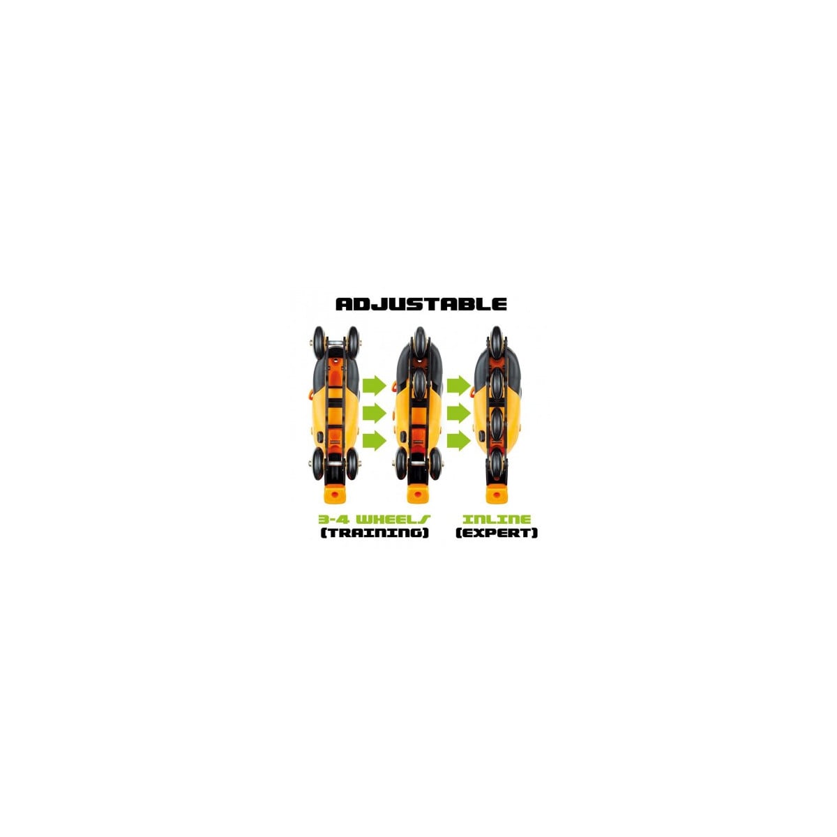 - Incluye: 2 patines en línea color naranja ajustables y regulables en tamaño y posición de ruedas modificables