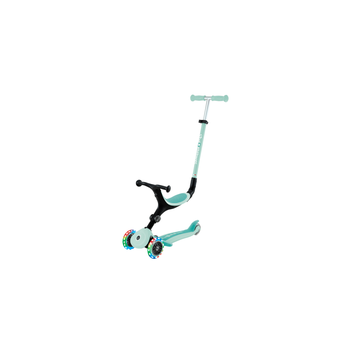 El Patinete Go Up Active Lights Menta es evolutivo, seguro y divertido, con ruedas LED, diseño ajustable y perfecto para acompañar el crecimiento infantil.