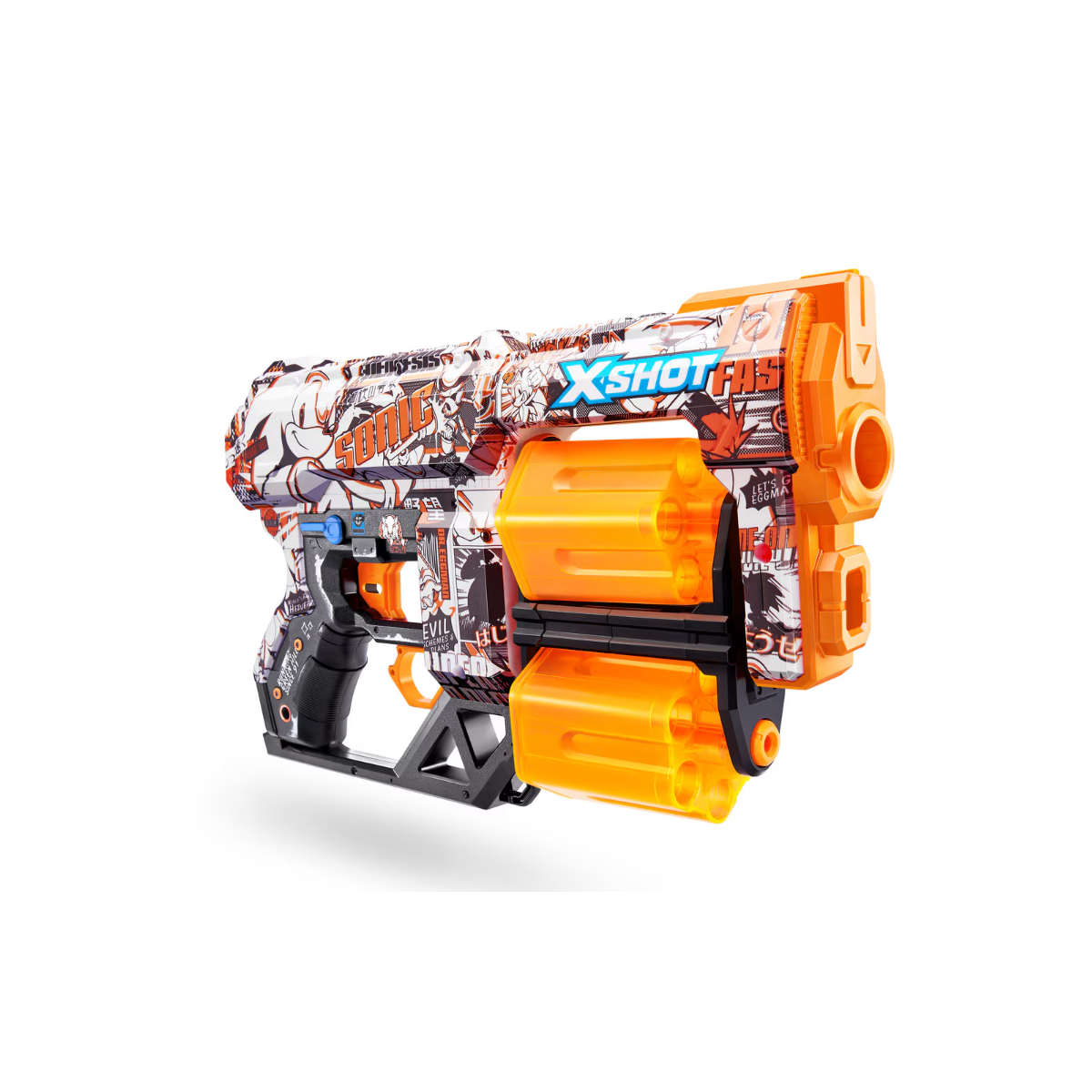 Con la pistola X-Shot Skins Sonic, la velocidad y la acción se combinan para ofrecer partidas llenas de emoción, estilo gamer y disparos a gran distancia.
