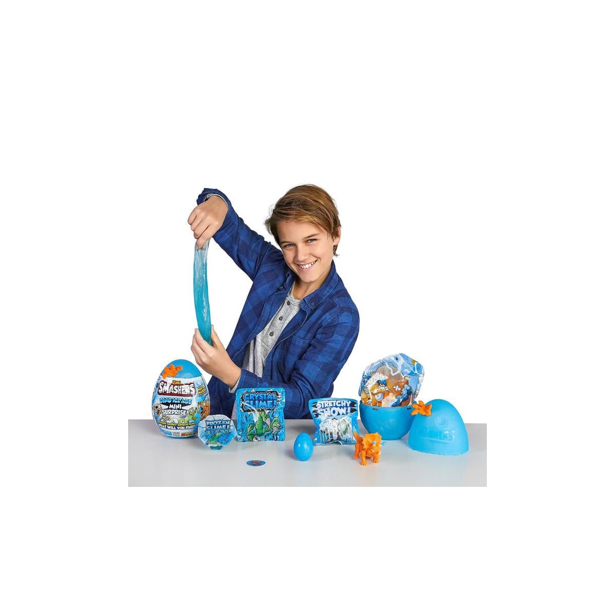 - Incluye: 10 sorpresas como las piezas necesarias para crear un dinosaurio, un mapa rasca del Ártico, 1 bolsa de fósil congelado, 1 smash-o-saur congelado, 6 mini huevos y un personaje.