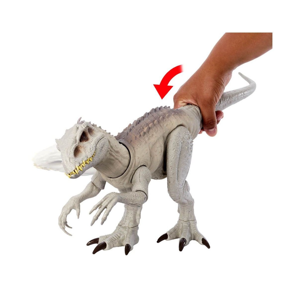 El Indominus Rex también cuenta con una función de ataque, que se activa desde la cola, permitiendo recrear escenas de acción y enfrentamientos. Su cuerpo articulado facilita diferentes posiciones y movimientos, fomentando el juego imaginativo.