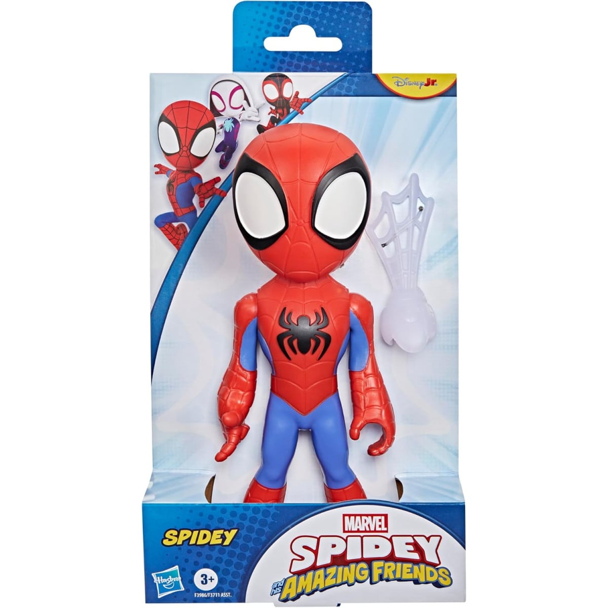 Figura Mega Spidey de 22,5 cm con articulaciones y accesorio, ideal para recrear aventuras de superhéroes desde los 3 años.