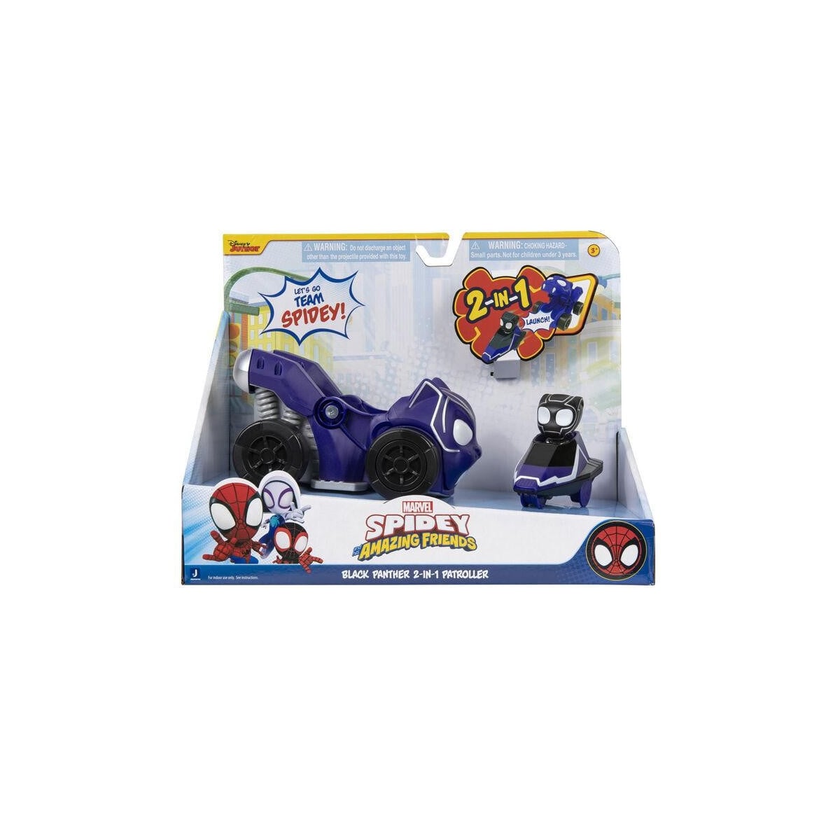 Imagina todo tipo de aventuras con este vehículo 2 en 1 de Black Panther, uno de los amigos del Equipo Spidey.