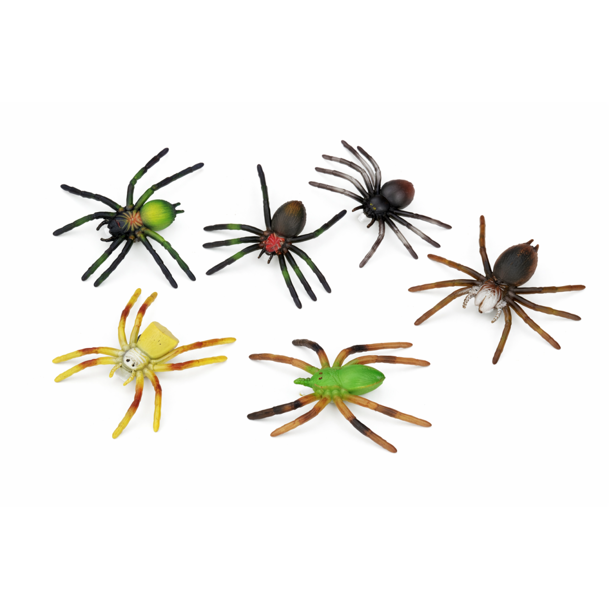 - Contenido: Incluye 6 figuras de arañas en un mismo pack.