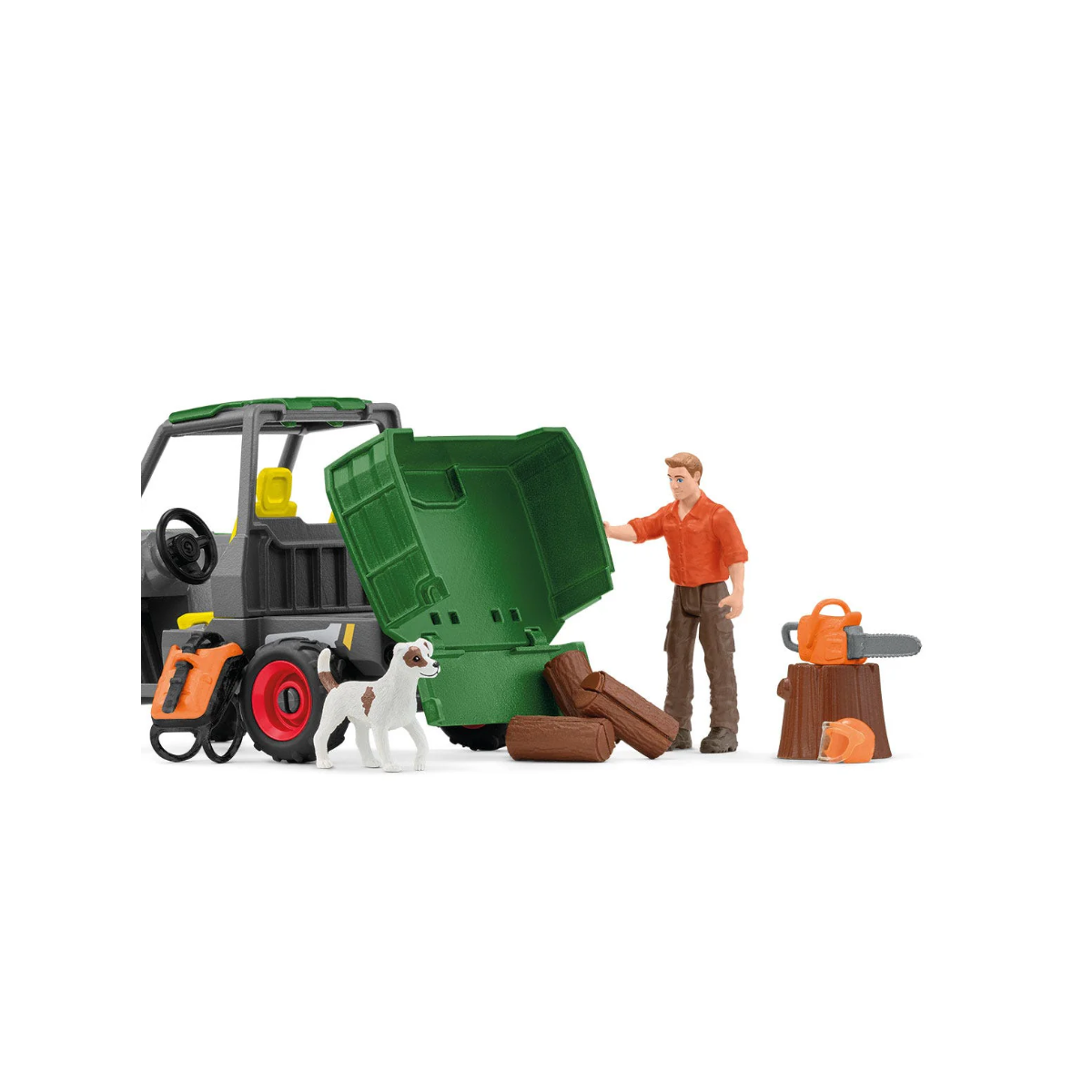 Descubre el Granjero Con Vehículo; múltiples accesorios para recrear escenas de trabajo forestal en el mundo informal de la granja.