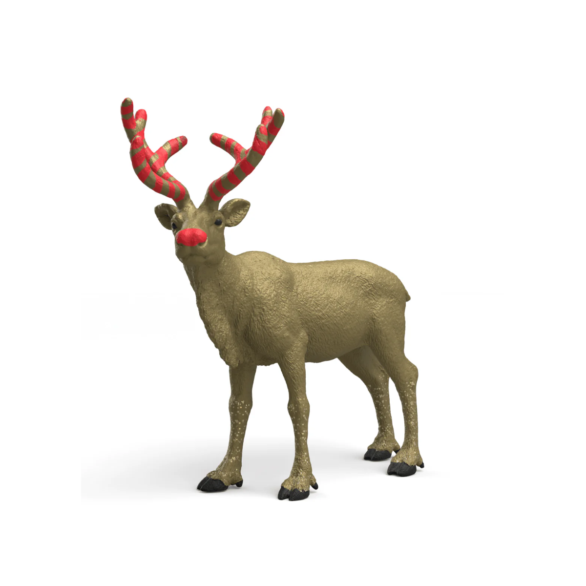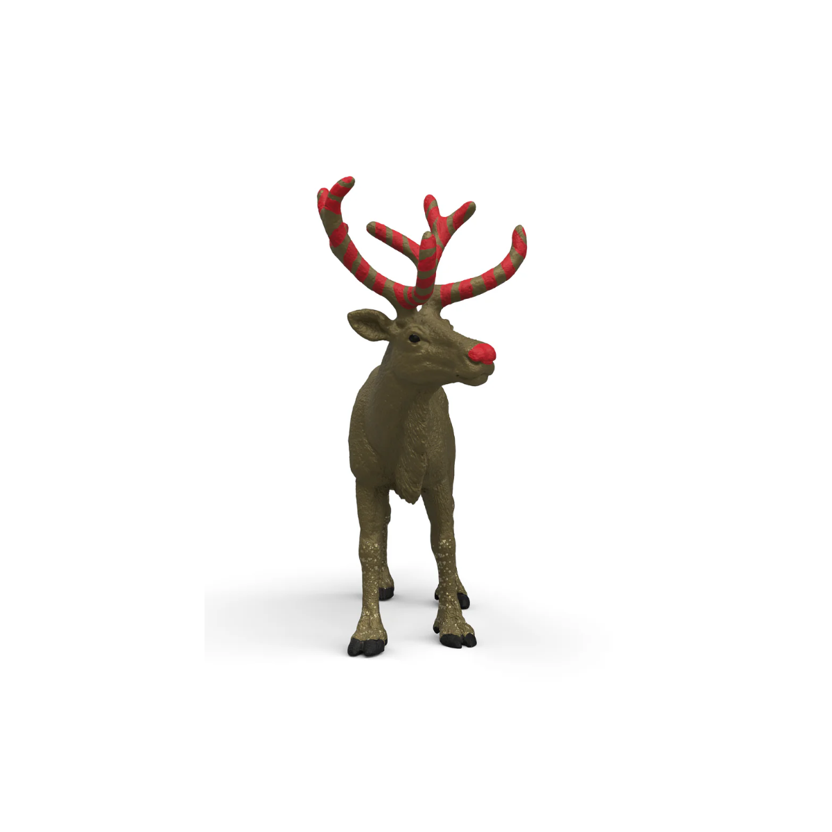 Descubre el Reno Edición Aniversario De Oro; una figura especial y festiva que añade brillo, encanto y magia a las historias y colecciones infantiles.