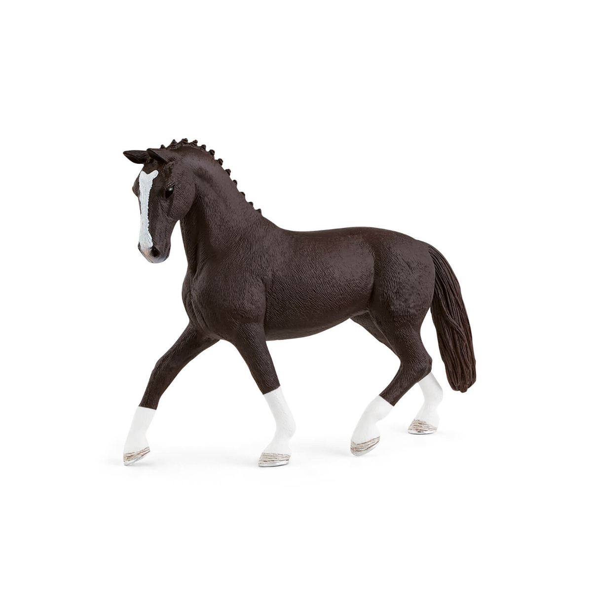 Descubre la Schleich Yegua Hannoveriana Azabache; perfecta para crear competiciones y aventuras ecuestres llenas de imaginación.