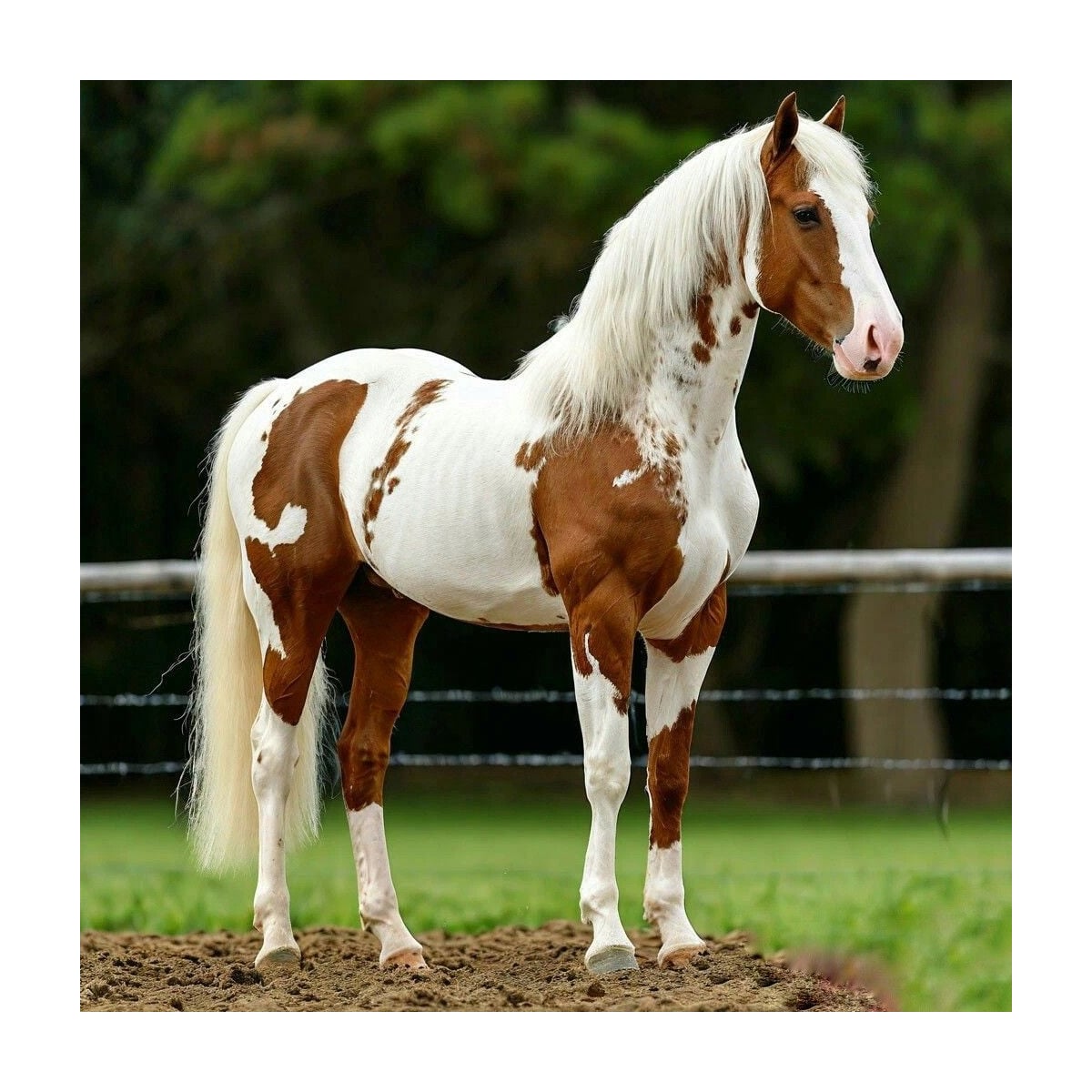 La Yegua Mustang refleja la esencia de los caballos salvajes que recorren grandes extensiones en libertad. Su postura relajada pero atenta transmite esa combinación de calma y alerta que caracteriza a los mustang, siempre conectados con su entorno.