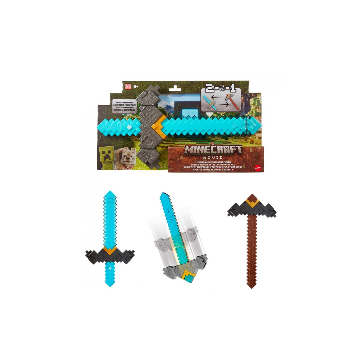 Sumérgete en el mundo de Minecraft La Película con la Espada Pico Transformable Minecraft, un accesorio ideal para que los fans del videojuego puedan recrear sus aventuras favoritas en la vida real. Diseñado con un estilo fiel al icónico universo pixelado, este juguete de rol permite a niños y niñas vivir la experiencia de convertirse en verdaderos exploradores de Minecraft.