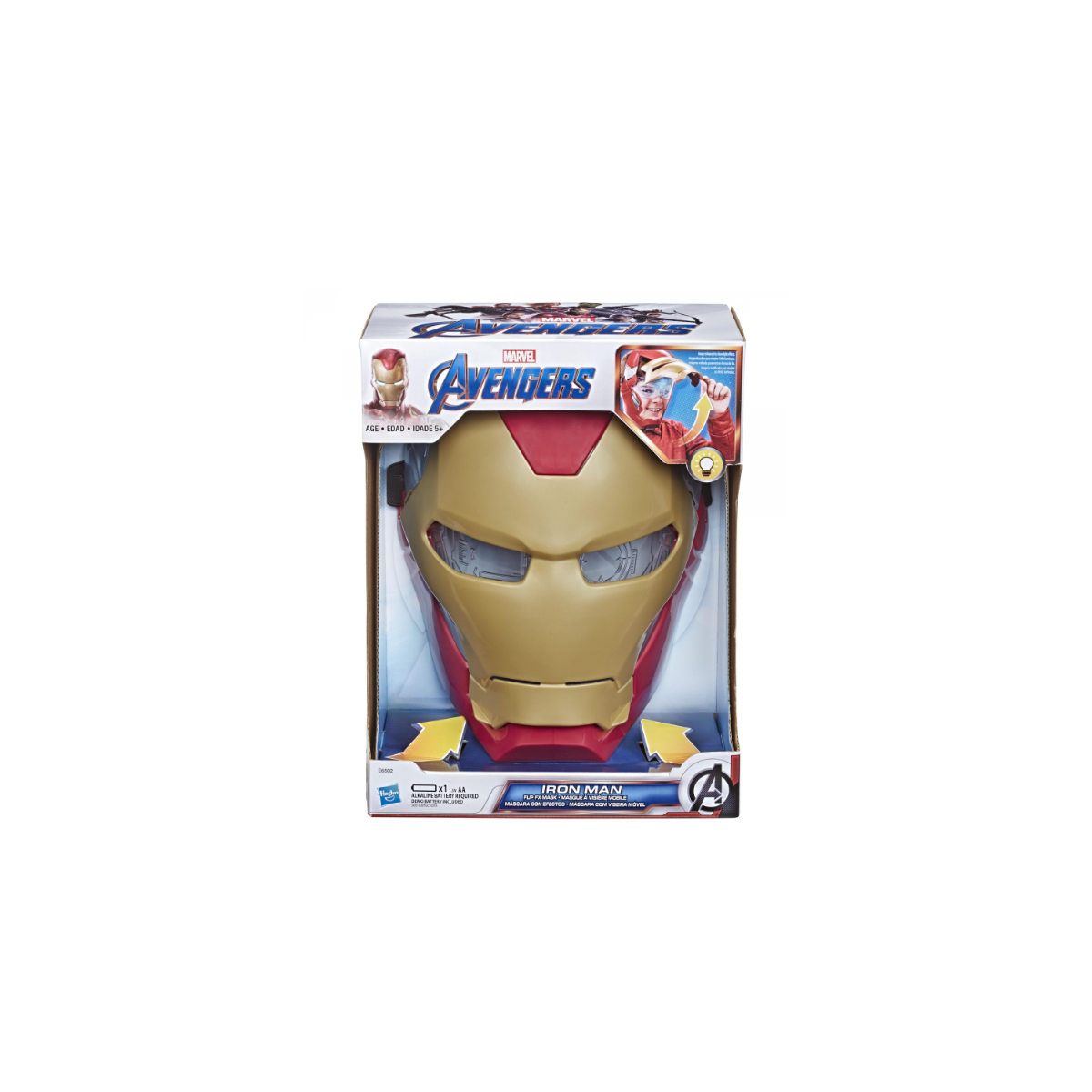 Al levantar la parte frontal de la máscara, se activan luces que simulan la alta tecnología del casco de Iron Man. Esta máscara permite a l@s niñ@s planificar sus aventuras y sentirse como verdaderos Vengadores.