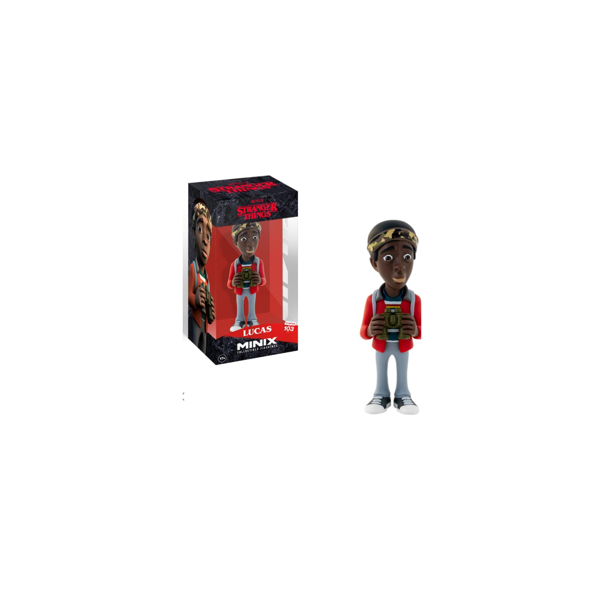 Esta figura representa a Lucas con su estilo característico de la serie: bandana camuflaje, mochila y prismáticos en las manos, listo para vigilar cualquier peligro que pueda aparecer. El diseño mantiene el estilo estilizado y reconocible de la colección Minix Collectible Figurines, con una expresión fiel al personaje y detalles muy cuidados en su vestimenta.