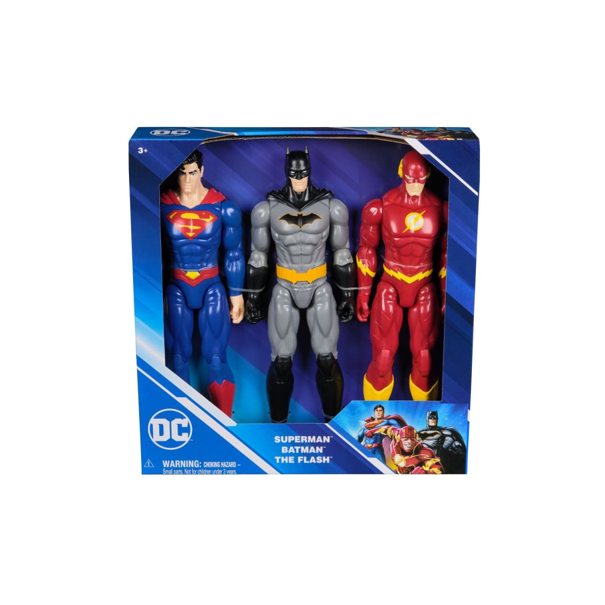 - Incluye: Tres figuras de acción: Superman, Batman y The Flash.