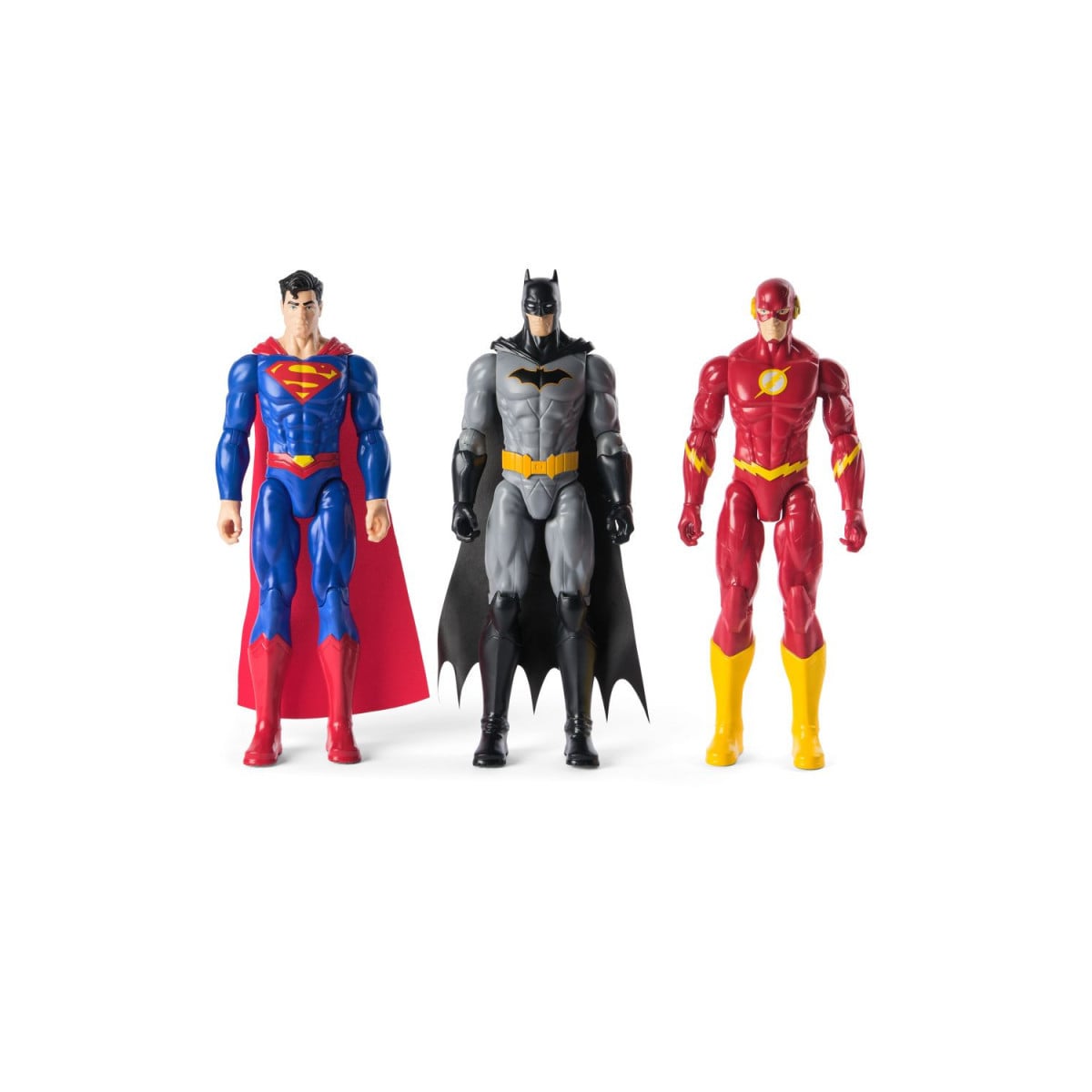 Pack 3 Figuras DC Universe: Superman, Batman y The Flash de 30 cm. Ideal para fans y coleccionistas, podrás recrear las épicas batallas del universo DC.