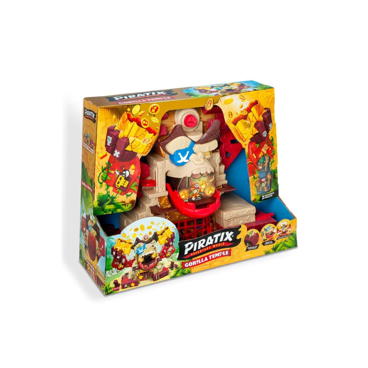 El diseño del templo está lleno de detalles que sorprenden a cada momento: pasadizos secretos, zonas que se abren de repente, jaulas para atrapar piratas y un imponente gorila que domina la escena. Cada partida se transforma en una experiencia única, ya que los niños y niñas podrán inventar nuevas misiones, rescatar tesoros o librar batallas entre corsarios.