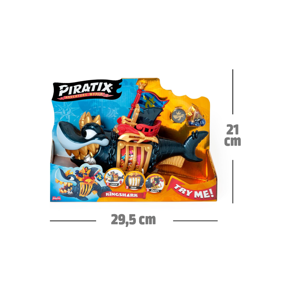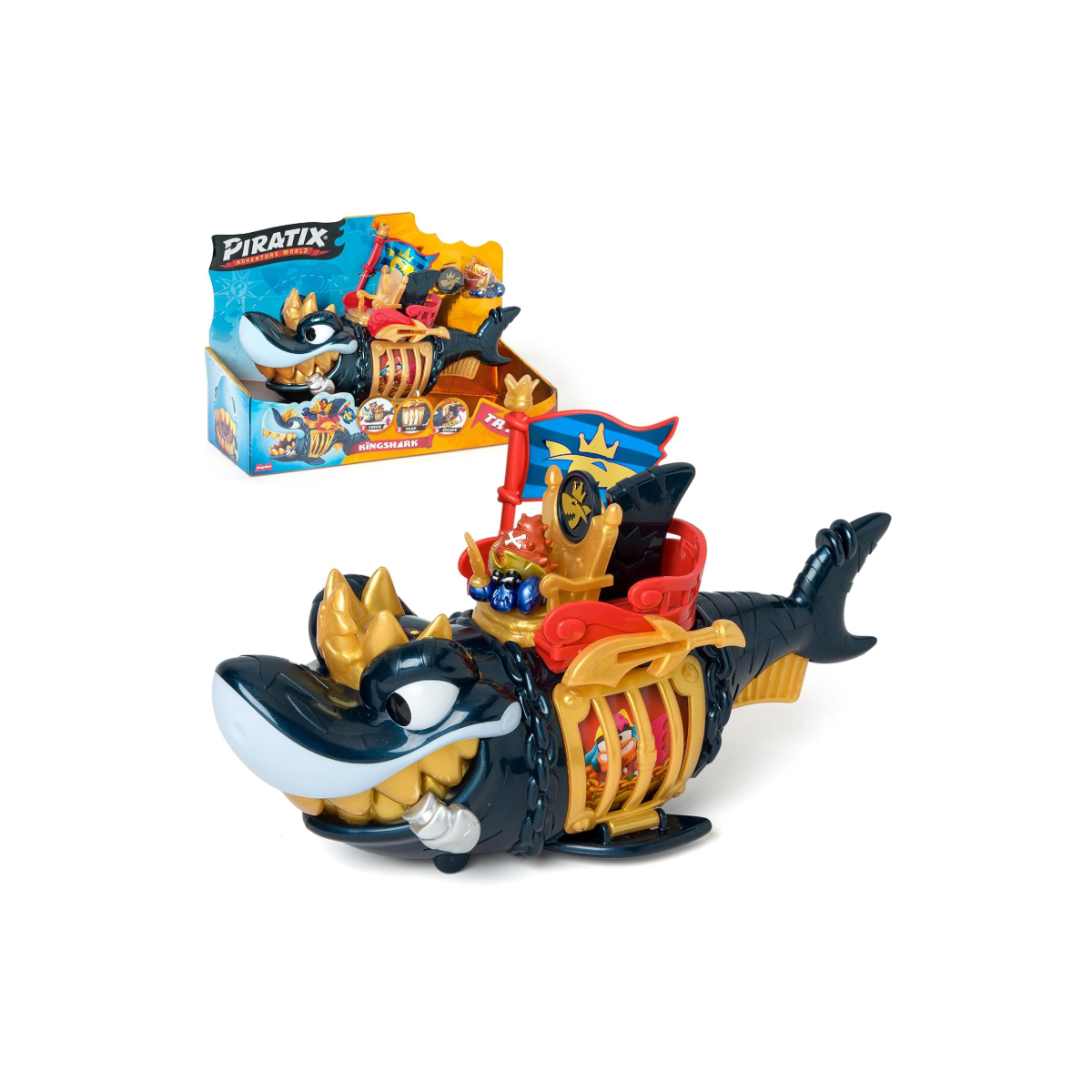 - Incluye: 1 tiburón, 1 tesoro exclusivo, 1 piratix exclusivo y 1 accesorio.