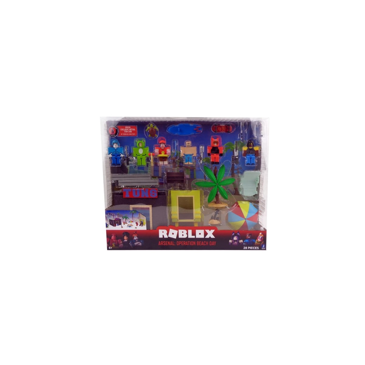 El pack Arsenal Día de Playa de Roblox es un set de juego que te permite revivir tus aventuras favoritas de Roblox o crear tus propias aventuras con seis personajes icónicos y una variedad de accesorios.