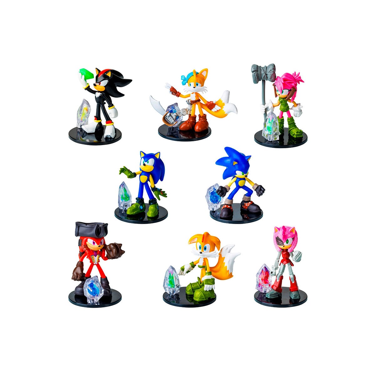 Sumérgete en la esencia de la serie de Sonic con el Prisma Sorpresa de esta colección exclusiva. Cada prisma presenta una figura de 7 cm, ¡y cada figura viene con un emocionante prisma sorpresa! No te pierdas la oportunidad de coleccionar los 8 modelos únicos. El set incluye: