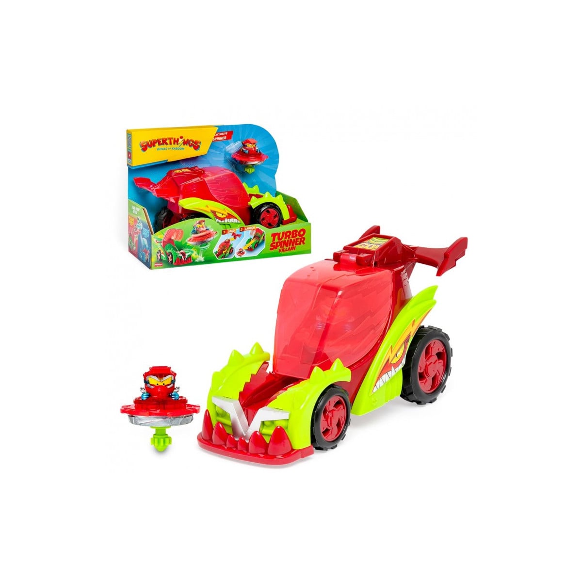 Su diseño en rojo y verde, con detalles afilados y aspecto desafiante, lo convierte en el vehículo perfecto para los fans del lado más travieso de los SuperThings. Solo hay que cargar el spinner exclusivo en el coche, accionar el lanzador y verlo salir disparado para girar a toda velocidad.