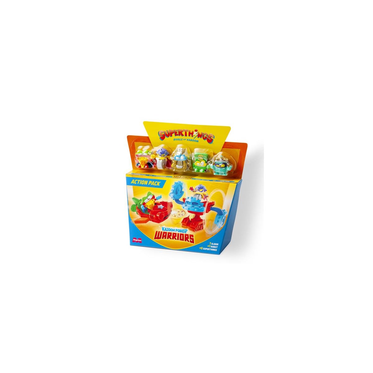 Cada pack incluye 1 robot, 1 slider y 5 SuperThings, listos para lanzarse a la acción. El robot puede pilotar el slider para moverse a toda velocidad y enfrentarse a sus rivales en misiones llenas de aventura. Gracias a su diseño compacto y lleno de detalles, es ideal para que los peques inventen historias y recrean combates épicos.