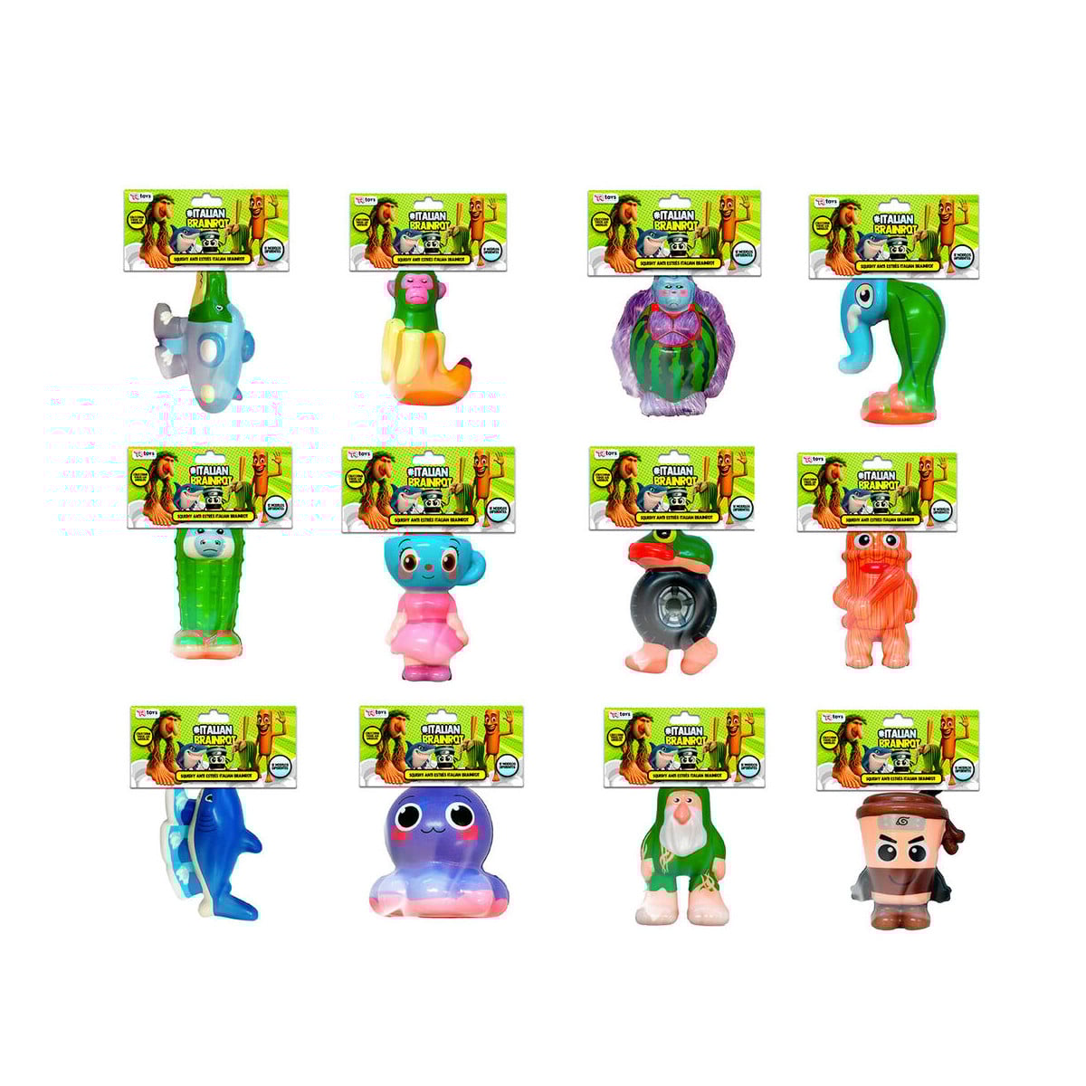¡La diversión más bizarra y blandita llega de la mano de las figuras Squishy Italian Brainrot! Este surtido de criaturas tan extrañas como encantadoras se convierte en el regalo perfecto para quienes buscan un juguete original, relajante y 100 % apretujable. Cada figura mide aproximadamente 11 cm y presenta un diseño único inspirado en personajes surrealistas, deformes y coloridos que mezclan el humor con un punto grotesco… ¡imposibles de ignorar!