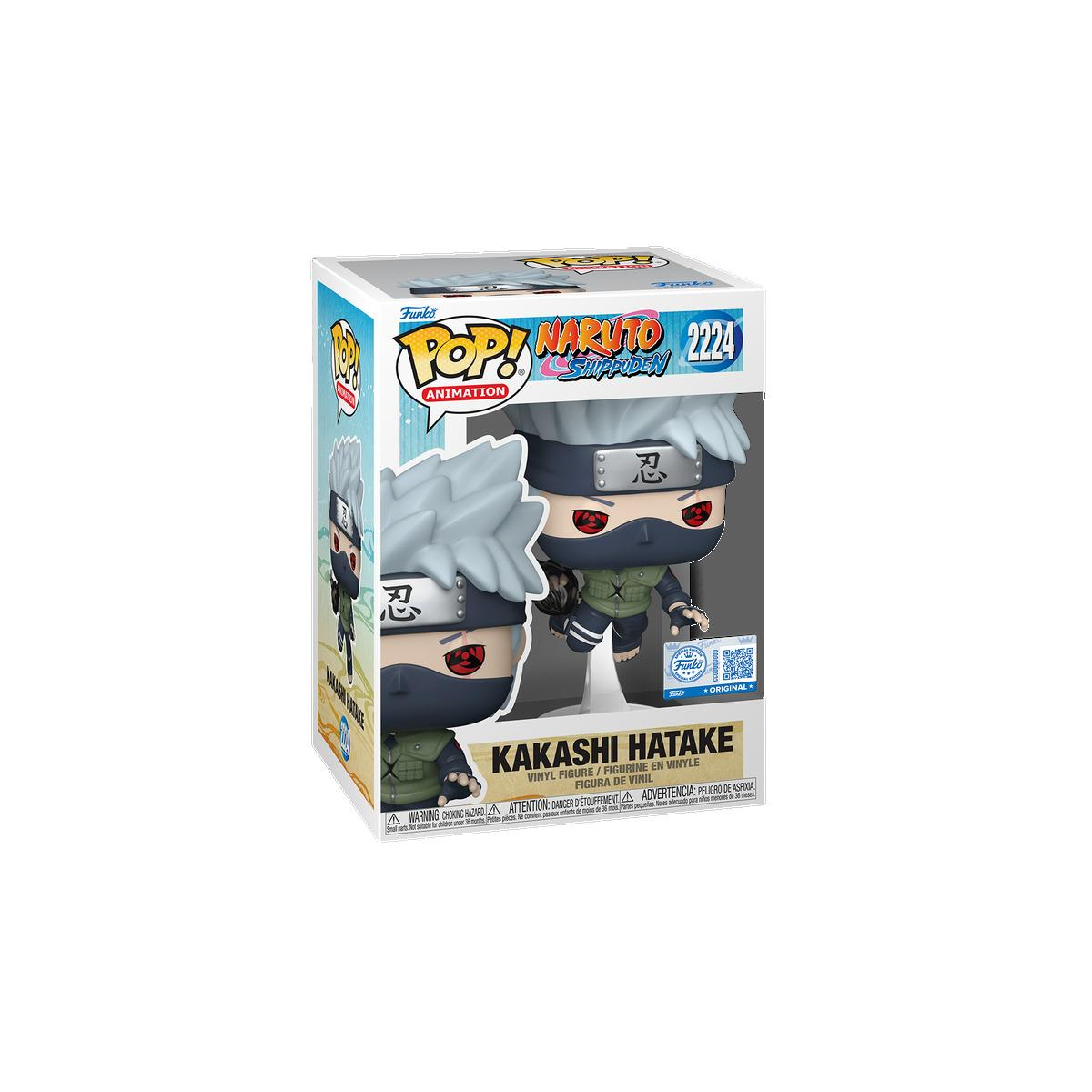- Diseño: Figura Funko Pop! con el característico look de Kakashi, incluyendo su máscara, protector frontal ninja y efecto visual del Sharingan.