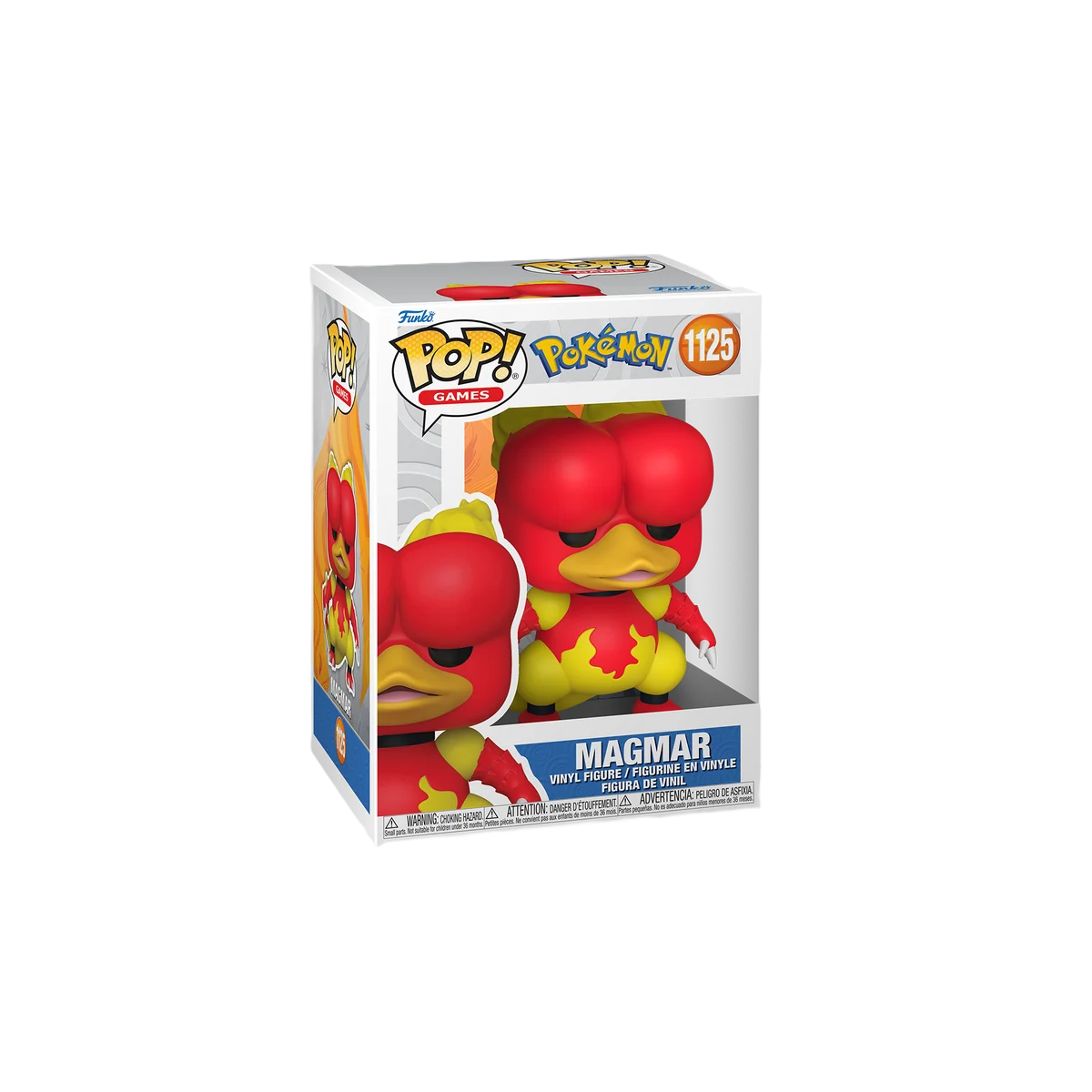 La Figura Funko Pop Pokémon Magmar 1125 representa a uno de los Pokémon de tipo fuego más reconocibles de la saga. Con su característico color rojo y amarillo, su pico de pato y los detalles de llamas en el cuerpo, esta figura captura perfectamente la apariencia de Magmar.
