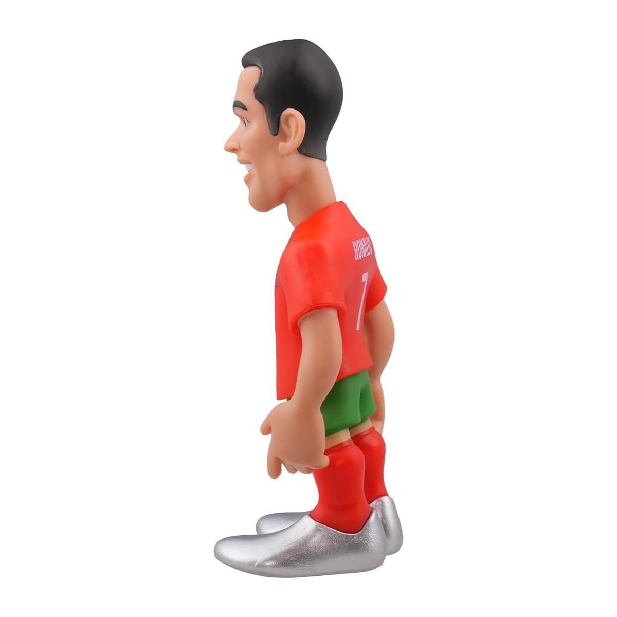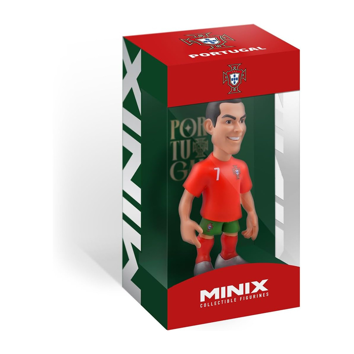 Añade a tu colección la figura Minix de Cristiano Ronaldo de 12 cm con el uniforme de Portugal y su dorsal 7, ideal para fans del fútbol y coleccionistas.