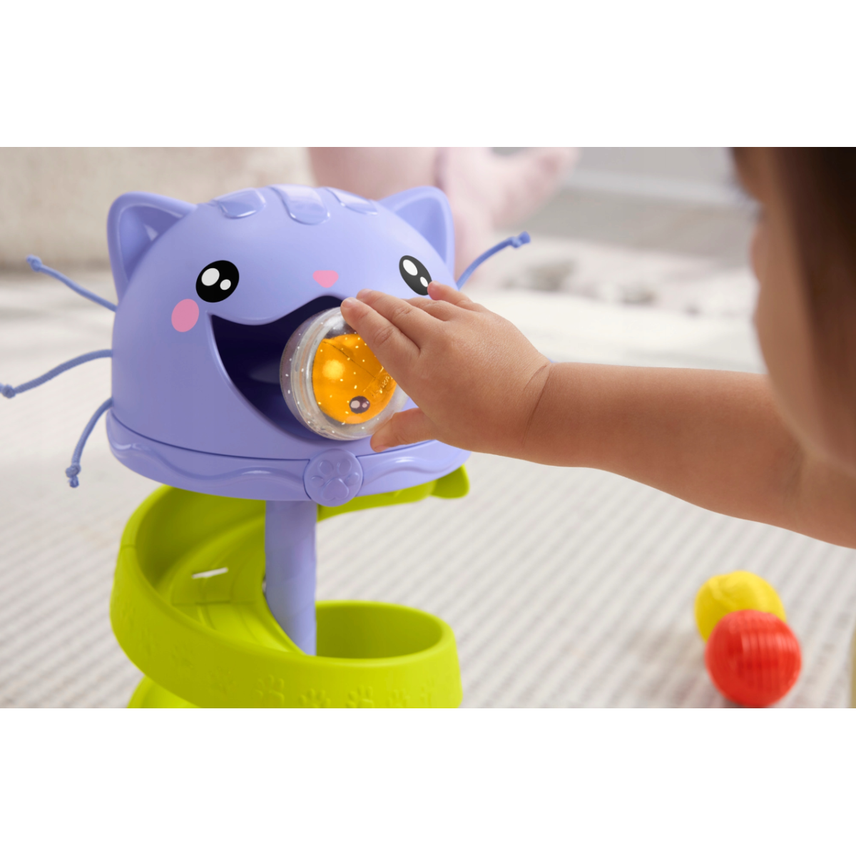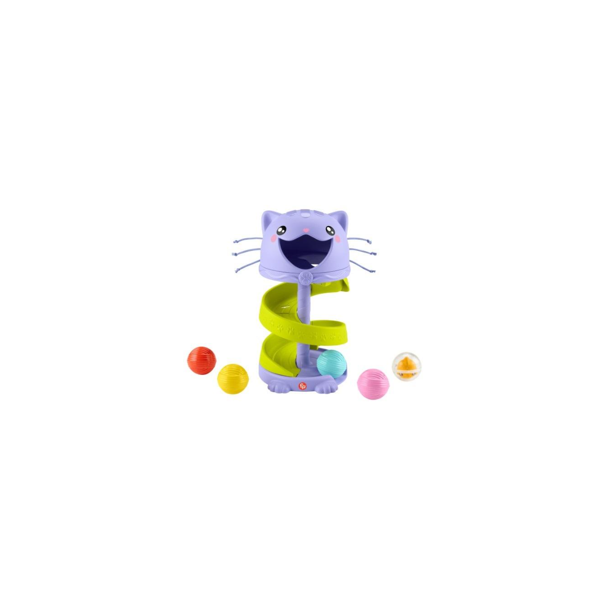 Fisher Price Torre Felix Mangiagomitoli es un juguete pensado para acompañar a niñ@s pequeñ@s en sus primeros descubrimientos. Su diseño en forma de gatito simpático atrapa la atención desde el primer momento, y la espiral central crea un movimiento visual muy llamativo cuando las bolitas empiezan a rodar. Es de esos juguetes que invitan a repetir una y otra vez la acción, porque cada lanzamiento se convierte en una mini aventura: ver cómo baja la pelota, esperar que llegue abajo y volver a empezar.